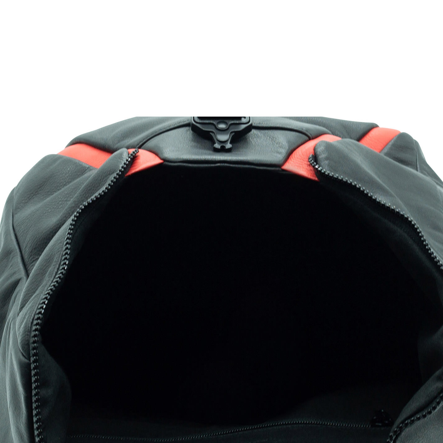 ist aus weichem Kalbsleder hergestellt. Das Modell zeichnet sich durch einen Kunststoffreißverschluss und einen technischen Verschluss aus. Die Schulterriemen aus Nylon sind gepolstert.