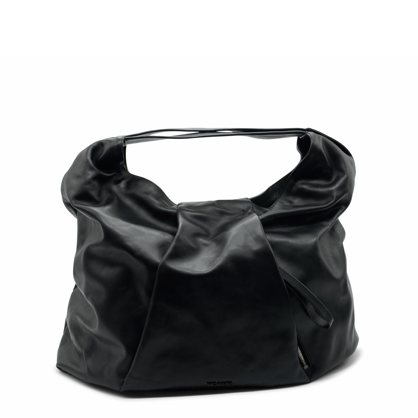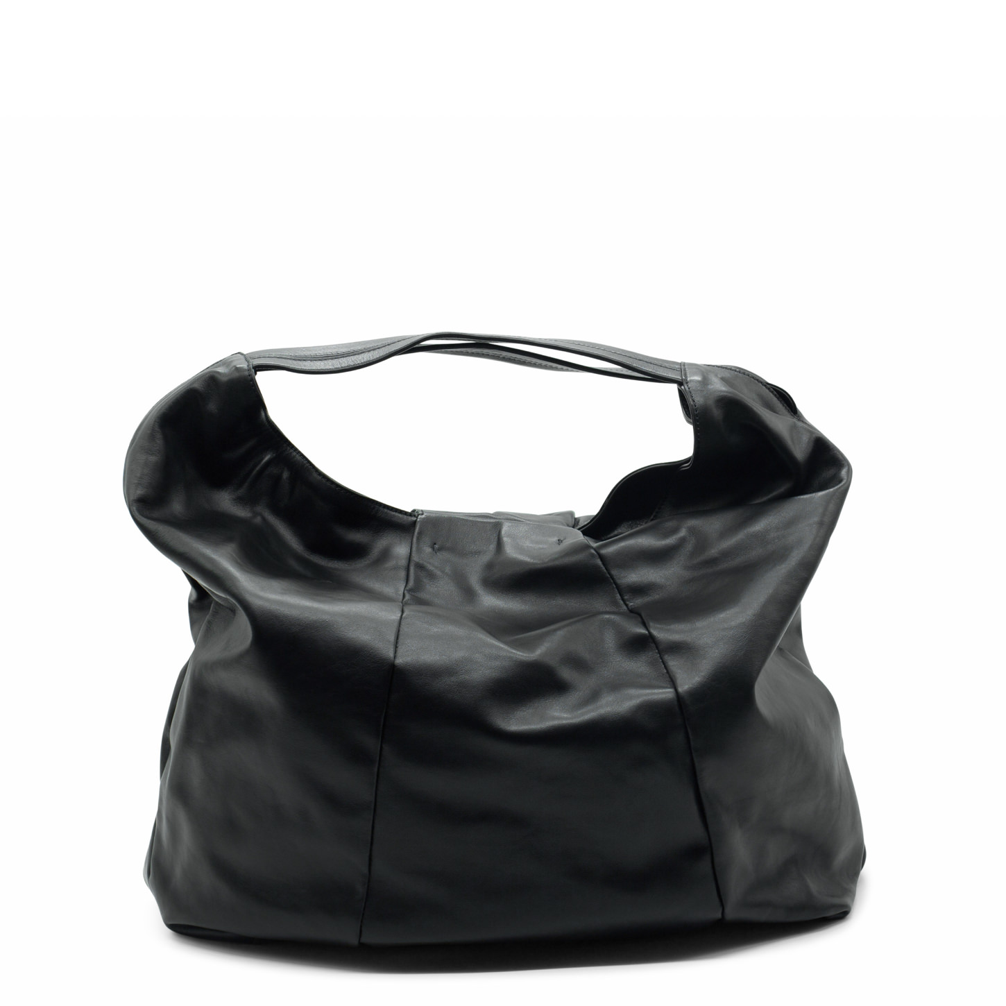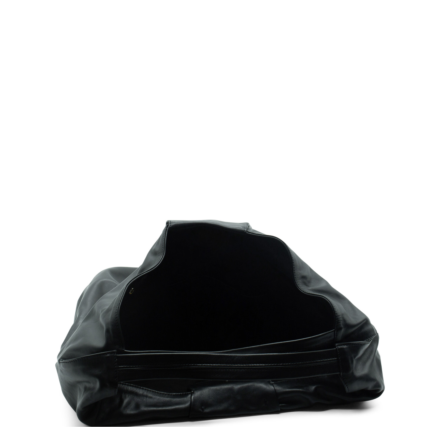 ist aus glattem Kalbsleder gefertigt und zeichnet sich durch Ledergriffe und eine versteckte Tasche auf der Vorderseite aus. Das Modell lässt sich mit Druckknöpfen verschließen. Mit metallischem Logo auf der Vorderseite.