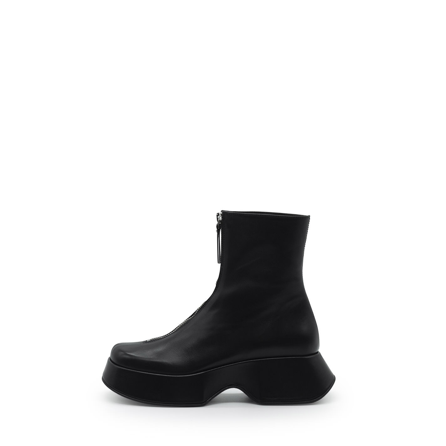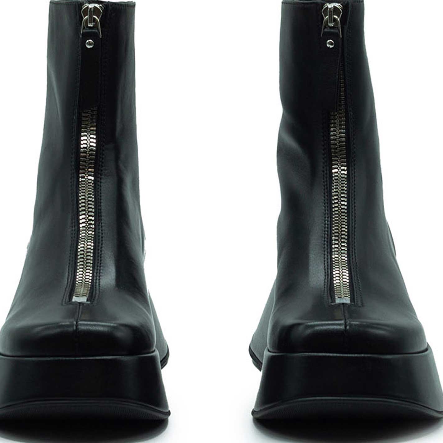 Der schlanke schwarze Boot Mini Yoko mit Metallreißverschluss an der Vorderseite ist aus glattem Kalbsleder gefertigt. Gummisohle mit rutschfester Textur. Das Highlight ist das weiche Fußbett. Made in Italy.