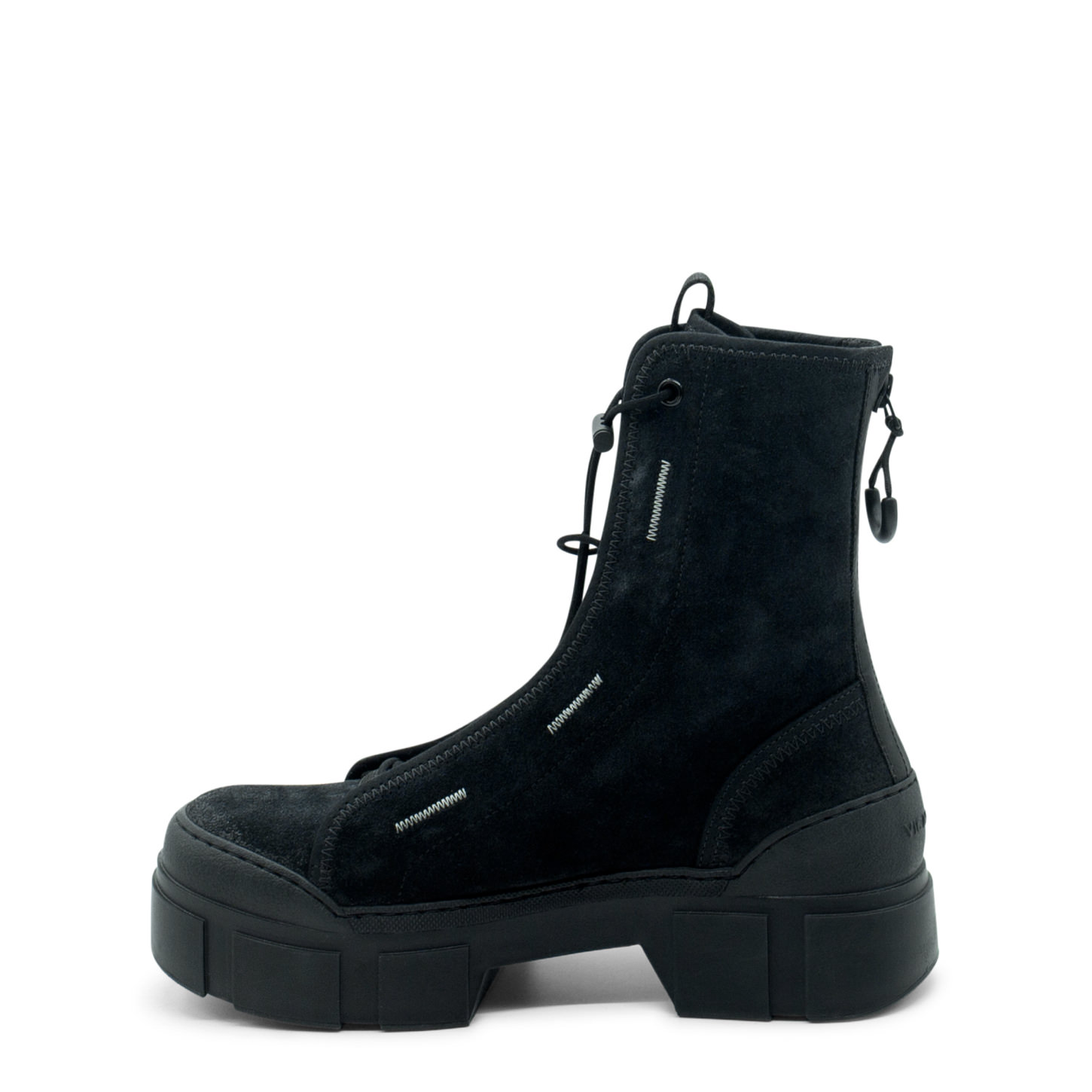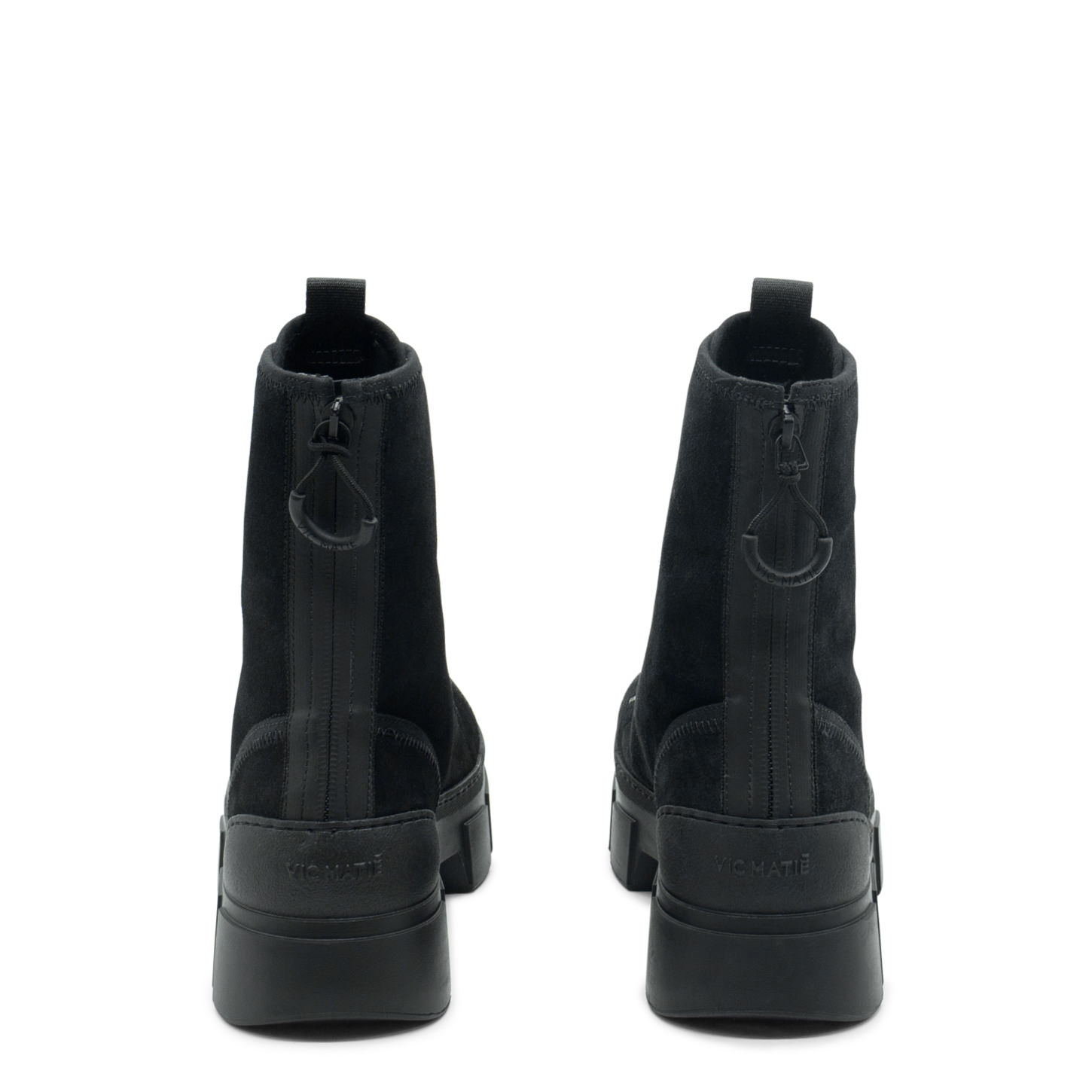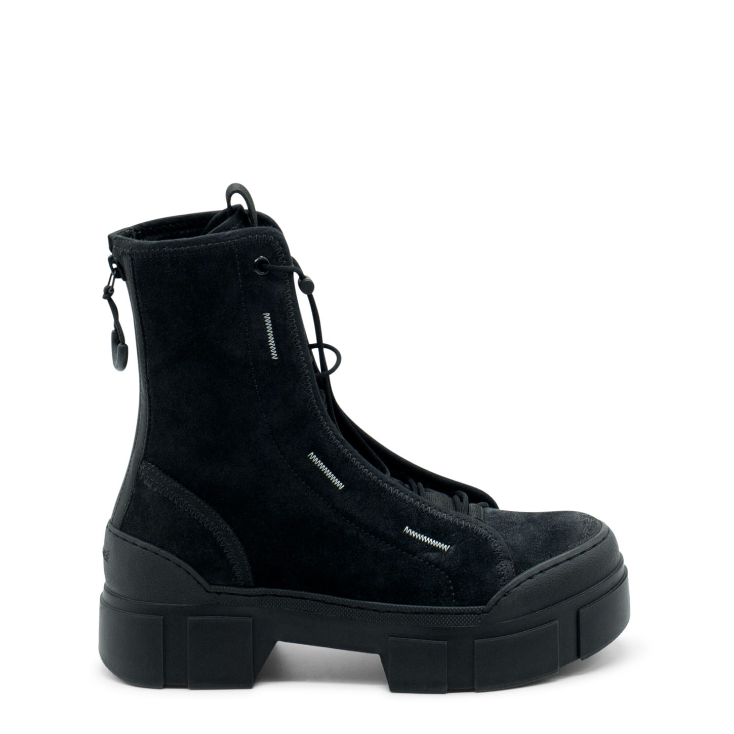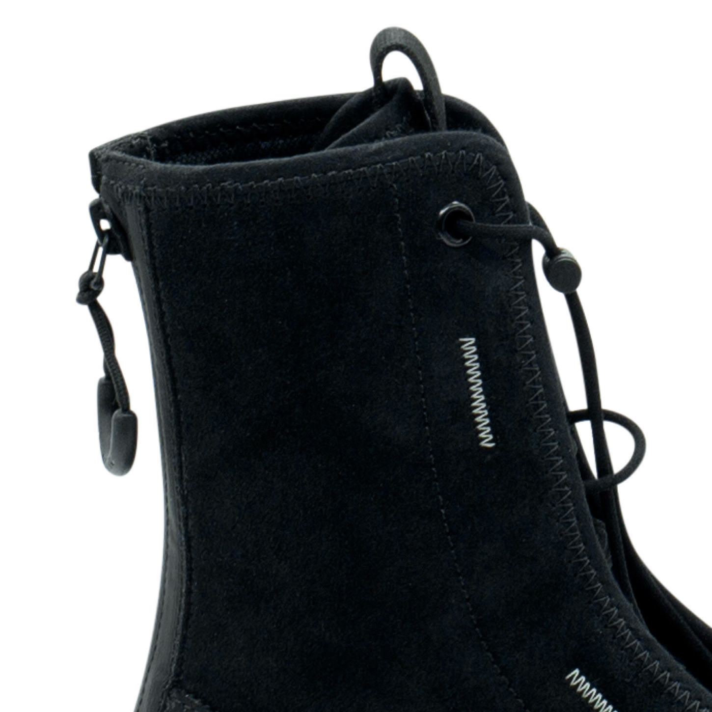 Der schwarze Boot Roccia mit schwarzen Zickzack-Details und Besätzen ist aus Kalbsspaltleder im Used-Look gefertigt und hat eine verstellbare elastische Schnürung mit Kordelzug, eine Ton in Ton gehaltene Grosgrain-Zunge und lässt sich dank des Reißverschlusses mit logoverziertem Zugband an der Rückseite ganz einfach anziehen. TPU-Schalensohle mit Reliefprägungen und weichem TAG-Fußbett mit Kalbslederbezug. Made in Italy.