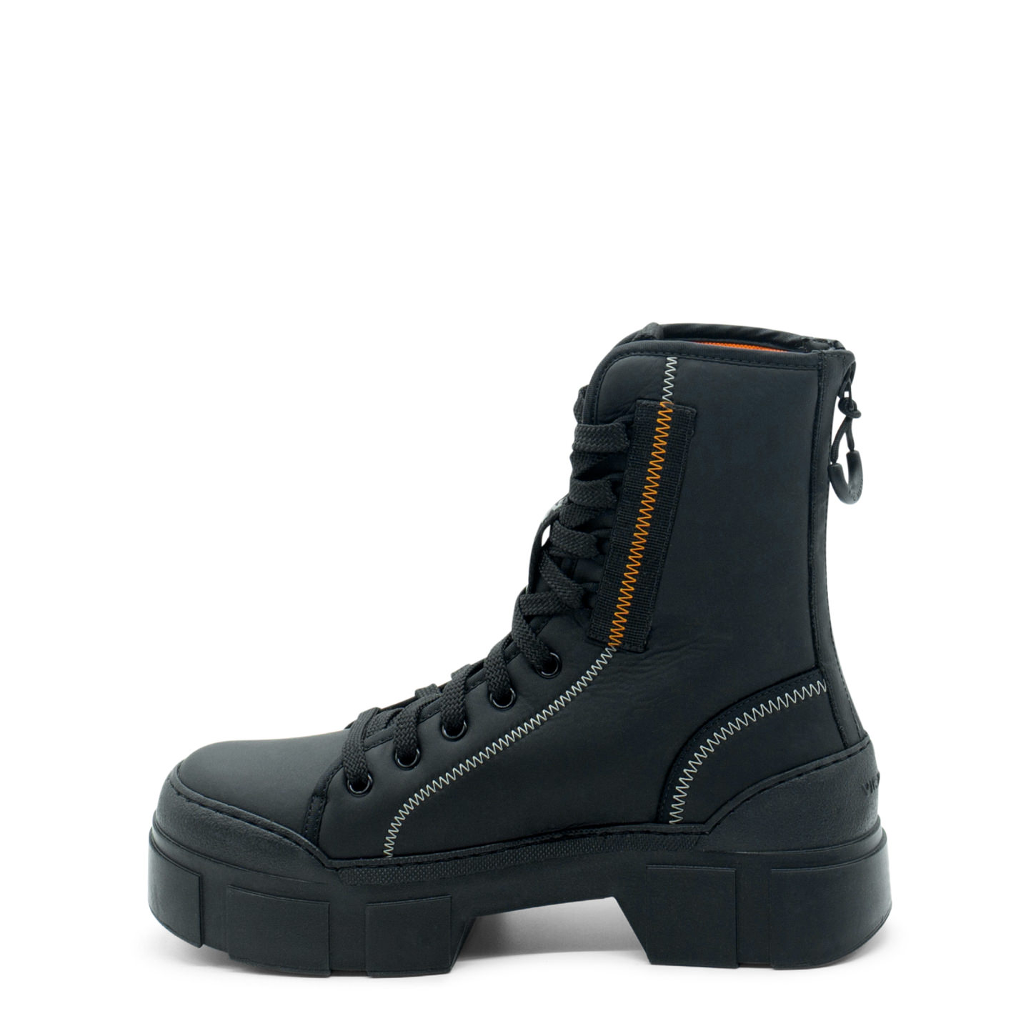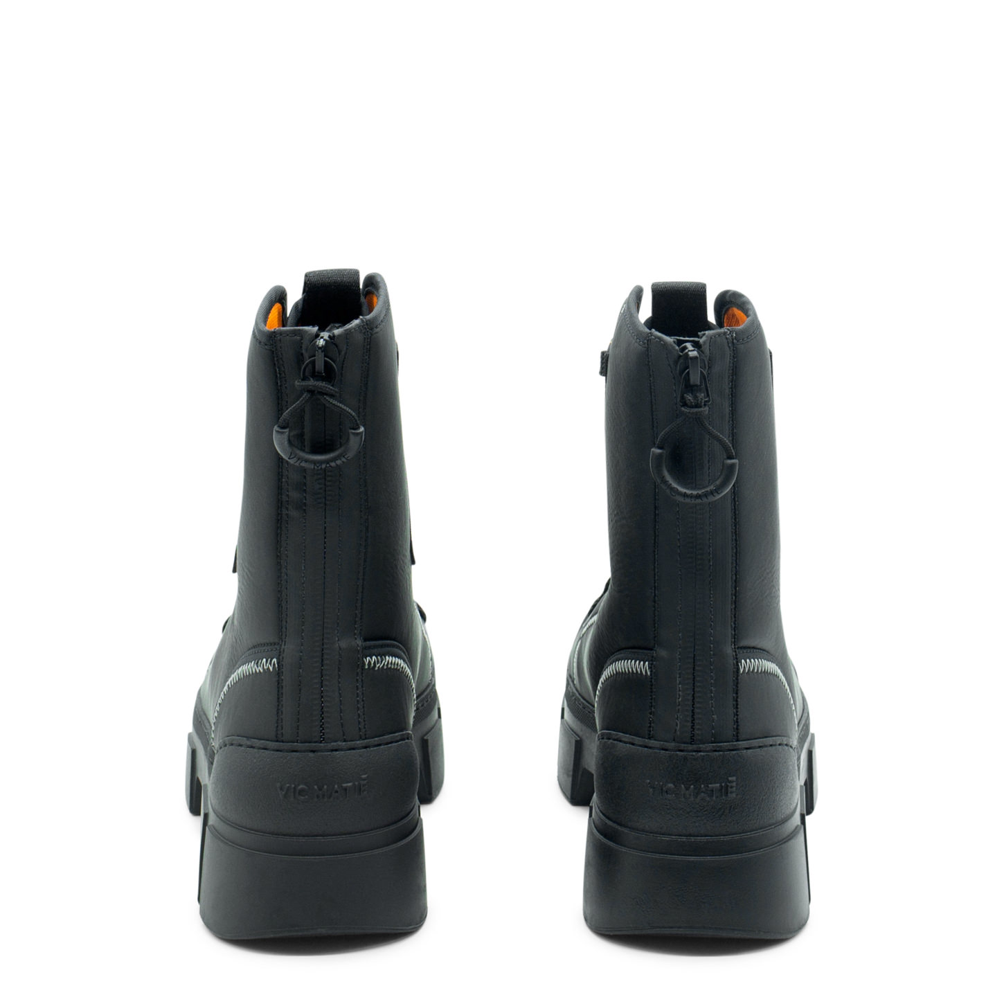 Der schwarze Boot Roccia mit Gummistiefel-Effekt und Gummi-Reißverschluss an der Rückseite ist aus technischem Gewebe gefertigt und hat Ton in Ton gehaltene Bordüren, Bänder und Zickzacklinien. TPU-Schalensohle mit Reliefprägungen und weichem TAG-Fußbett mit Kalbslederbezug. Made in Italy.