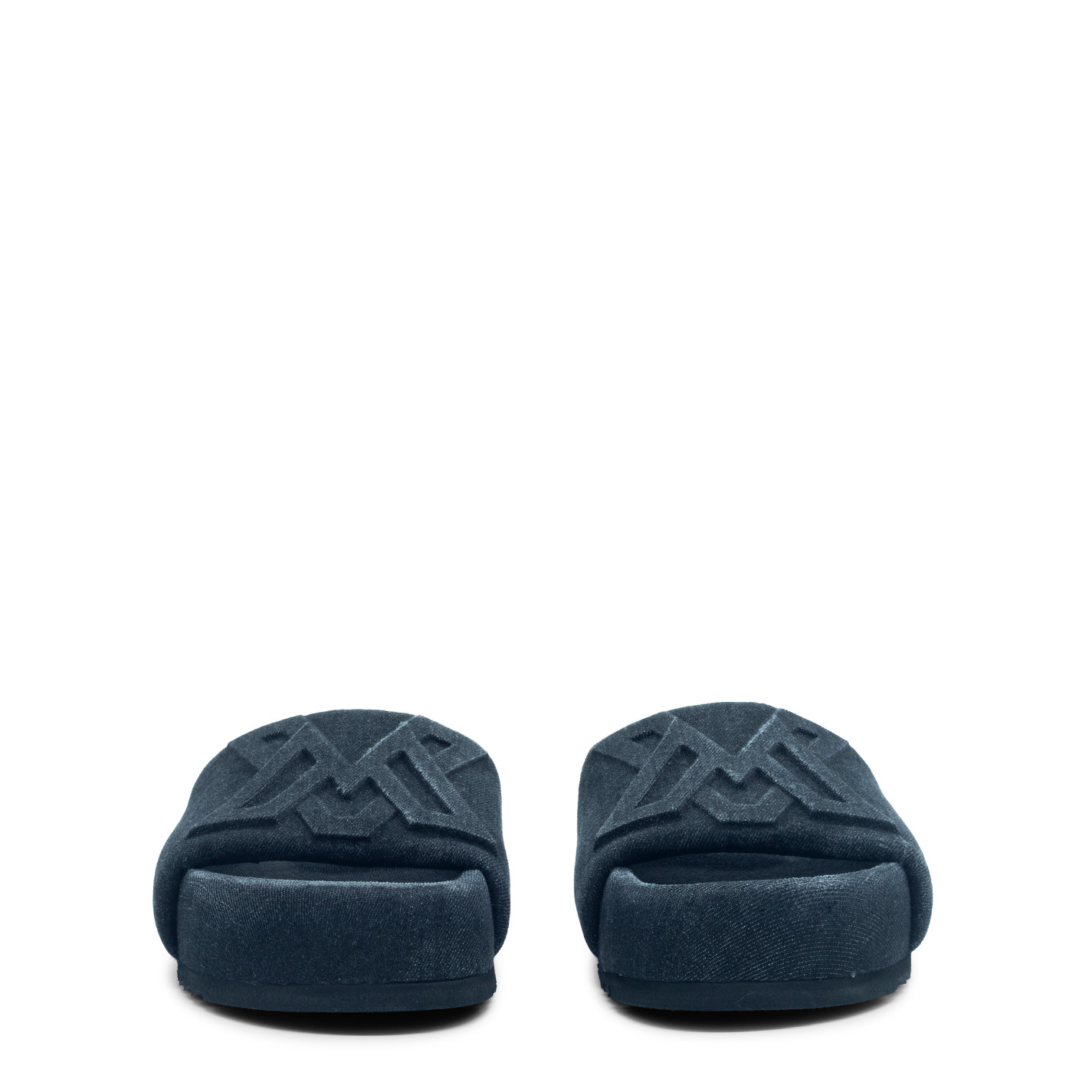 Bubble pantoffel aus schwarzem Denimaus Stone-Wash-Denim, anatomisches Fusbet mit dem gleichen Material wie das Obermaterial. Geprägtes VM-Monogramm in der Mitte. Leichte, gekerbte Gummisohle. Hergestellt in Italien.