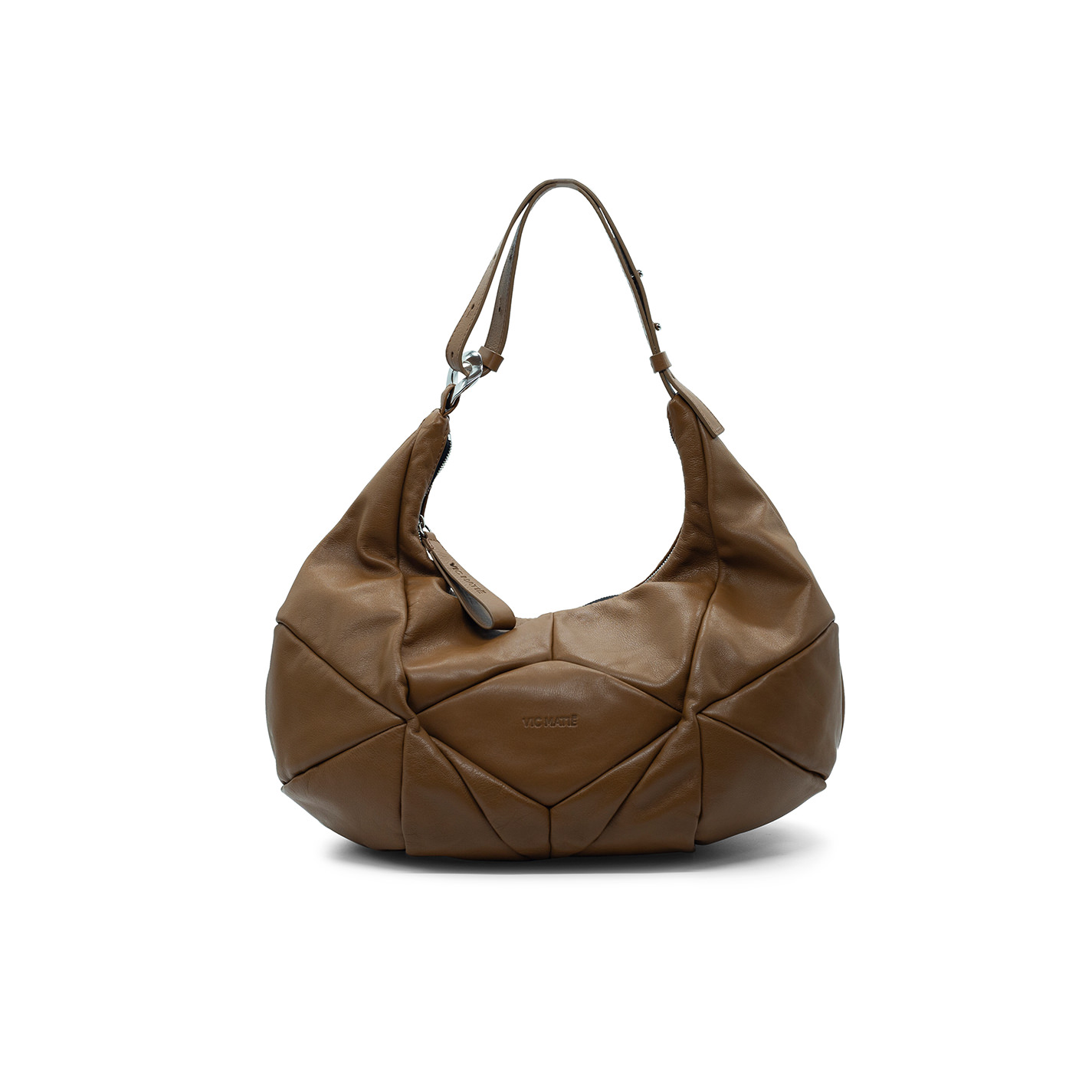 Leather wedge bagKalbsleder mit Reißverschluss aus Metall. Starrer, aber verstellbarer Griff, der sowohl in der Hand als auch auf der Schulter getragen werden kann. Schlüsselanhänger mit Logo im Lieferumfang enthalten.