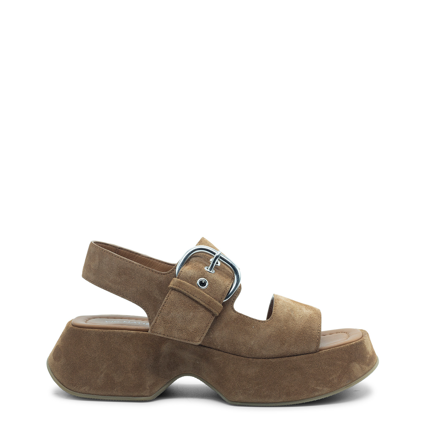 Mini-Yoko sandale-Bänder aus weichem Kalbsspaltleder mit verstellbaren Schnallen und Rückenriemen. Ausgestelltes Plateau, das mit dem gleichen Leder wie das Obermaterial bezogen ist. Gepolsterte und bequeme Einlegesohle. Gummisohle mit rutschfester Textur. Hergestellt in Italien.