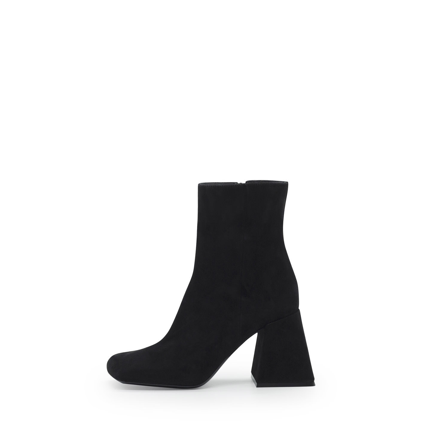 Die minimalistische Wildleder-Stiefelette Ming in Schwarz lässt sich dank des Reißverschlusses an der Innenseite ganz einfach anziehen. Er besitzt eine Ledersohle und einen quadratischen Blockabsatz, der mit Leder überzogen ist. Die asymmetrische Spitze verleiht ihm ein besonderes Design. Made in Italy.