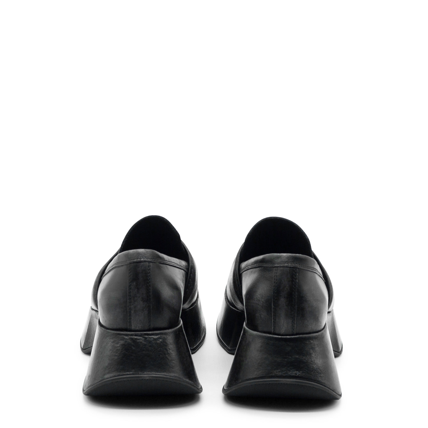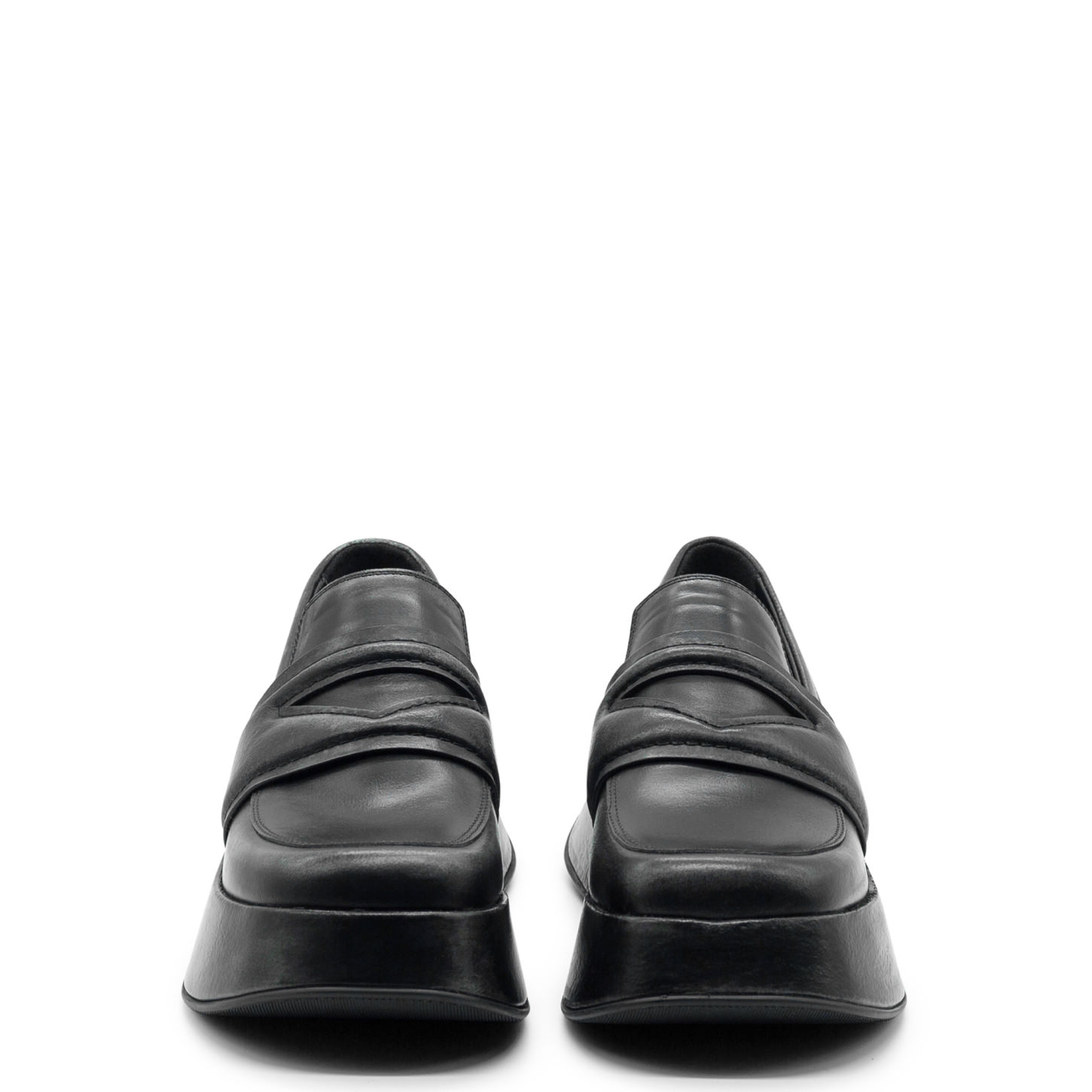 Der schwarze Mokassin Mini Yoko mit gepolstertem Steg und dreieckiger Öffnung ist aus Kalbsleder mit Used-Effekt gefertigt. Die Plateausohle hat eine ausgestellte Linie und ist mit dem gleichen Leder wie das Obermaterial überzogen. Das Highlight des Schuhs ist die bequeme, gepolsterte Innensohle. Gummisohle mit rutschfester Textur. Das weiche Fußbett ist mit Leder bezogen. Made in Italy.