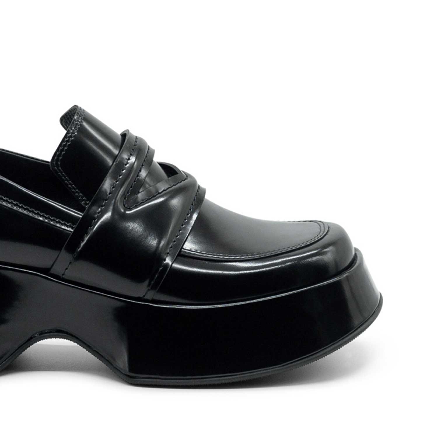 Der schwarze Mokassin Mini Yoko mit gepolstertem Steg und dreieckiger Öffnung ist aus gebürstetem Kalbsleder gefertigt. Die Plateausohle hat eine ausgestellte Linie und ist mit dem gleichen Leder wie das Obermaterial überzogen. Das Highlight des Schuhs ist die bequeme, gepolsterte Innensohle. Gummisohle mit rutschfester Textur. Das weiche Fußbett ist mit Leder bezogen. Made in Italy.