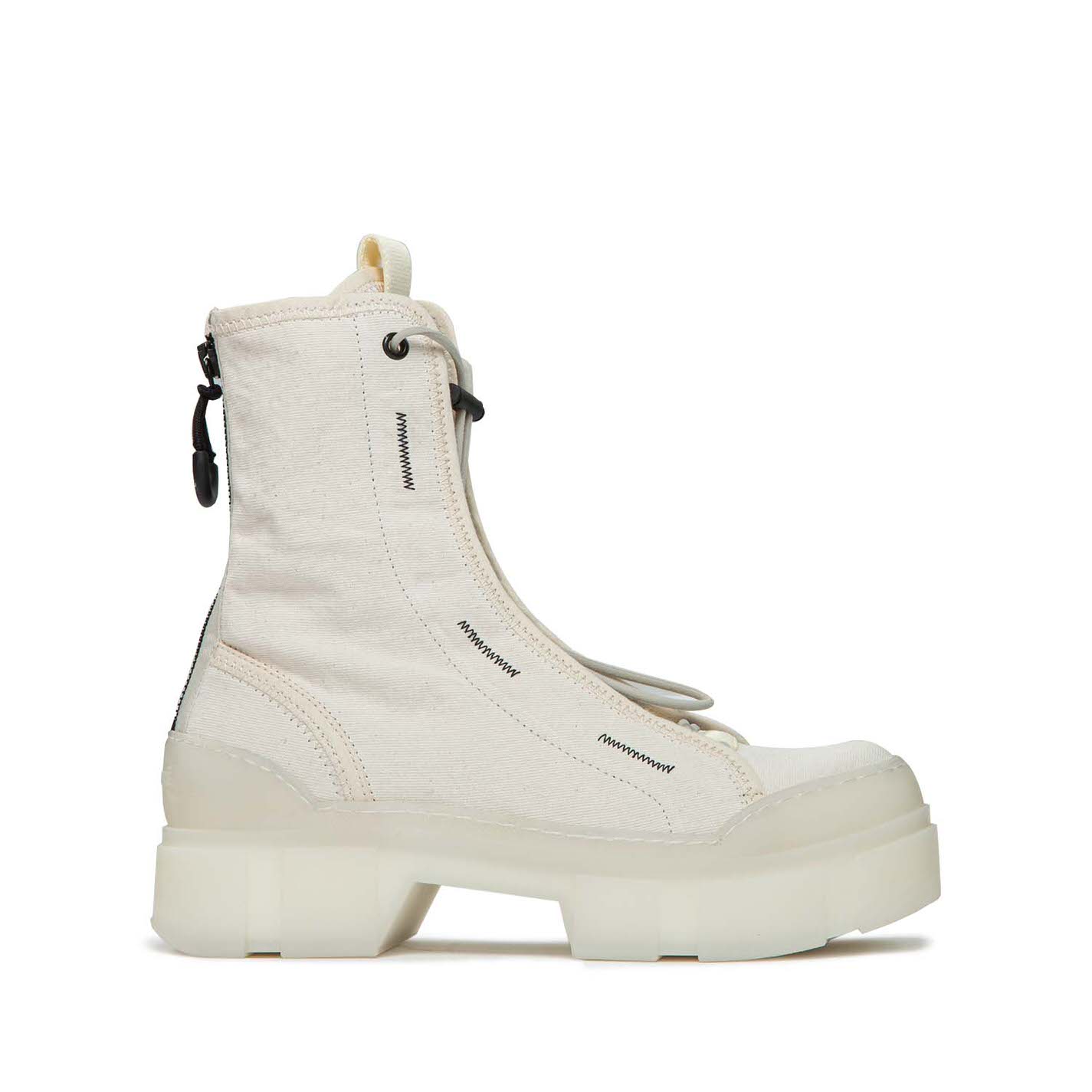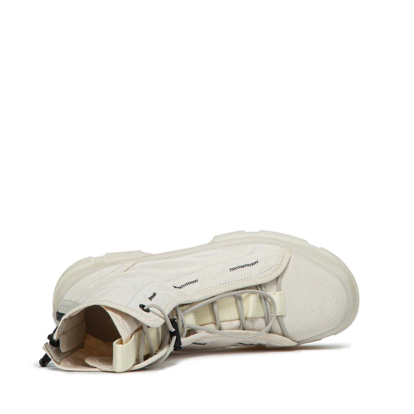 Roccia Amphibien ungefüttertes EcruBaumwolle, mit Stoff eingefasst, mit schwarzen Zickzack-Details, verstellbarer elastischer String mit Kordelzugzug; Ripsband, zweifarbiger Reißverschluss hinten für einfachen Einstieg, mit Gummizug mit Logo. TPU-Shell-Sohle mit erhabenen Kerben und weichem TAG-Fußbett, das mit Kalbsleder bezogen ist. Hergestellt in Italien.