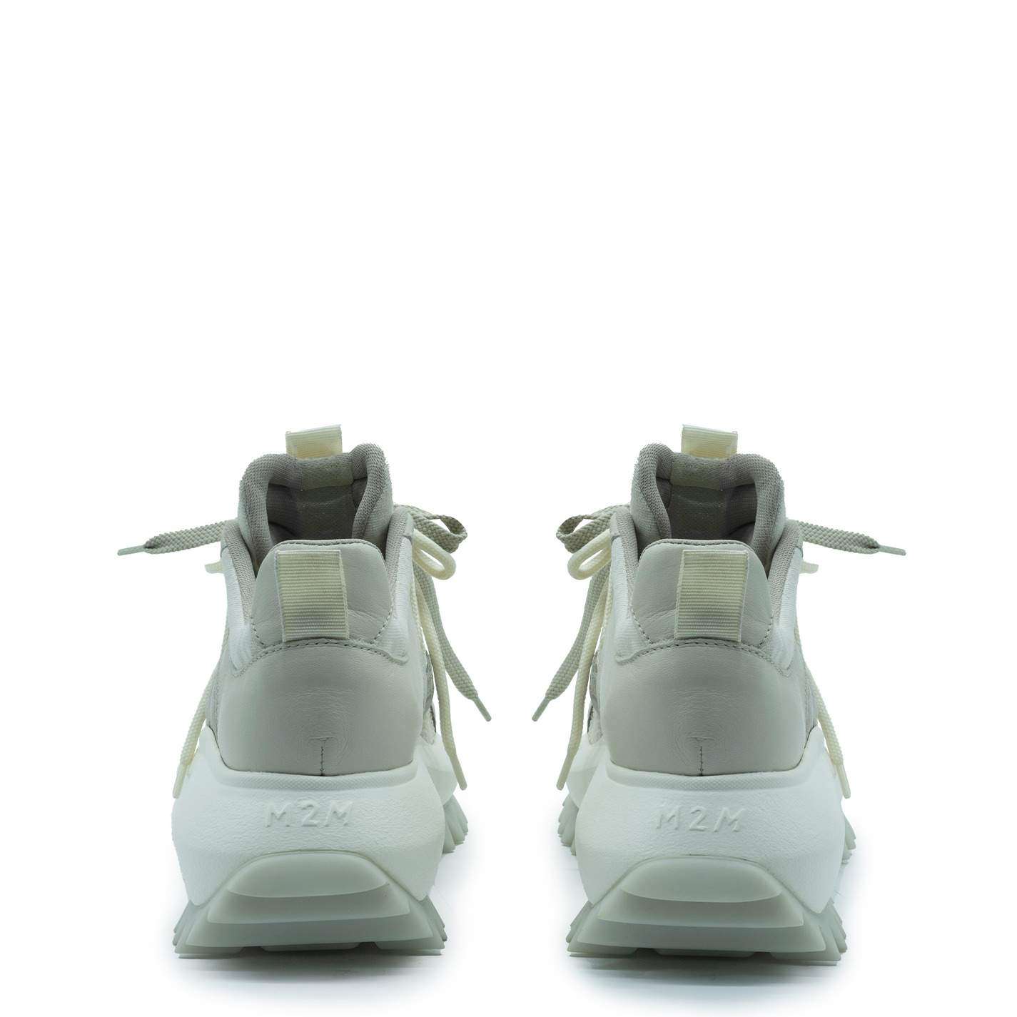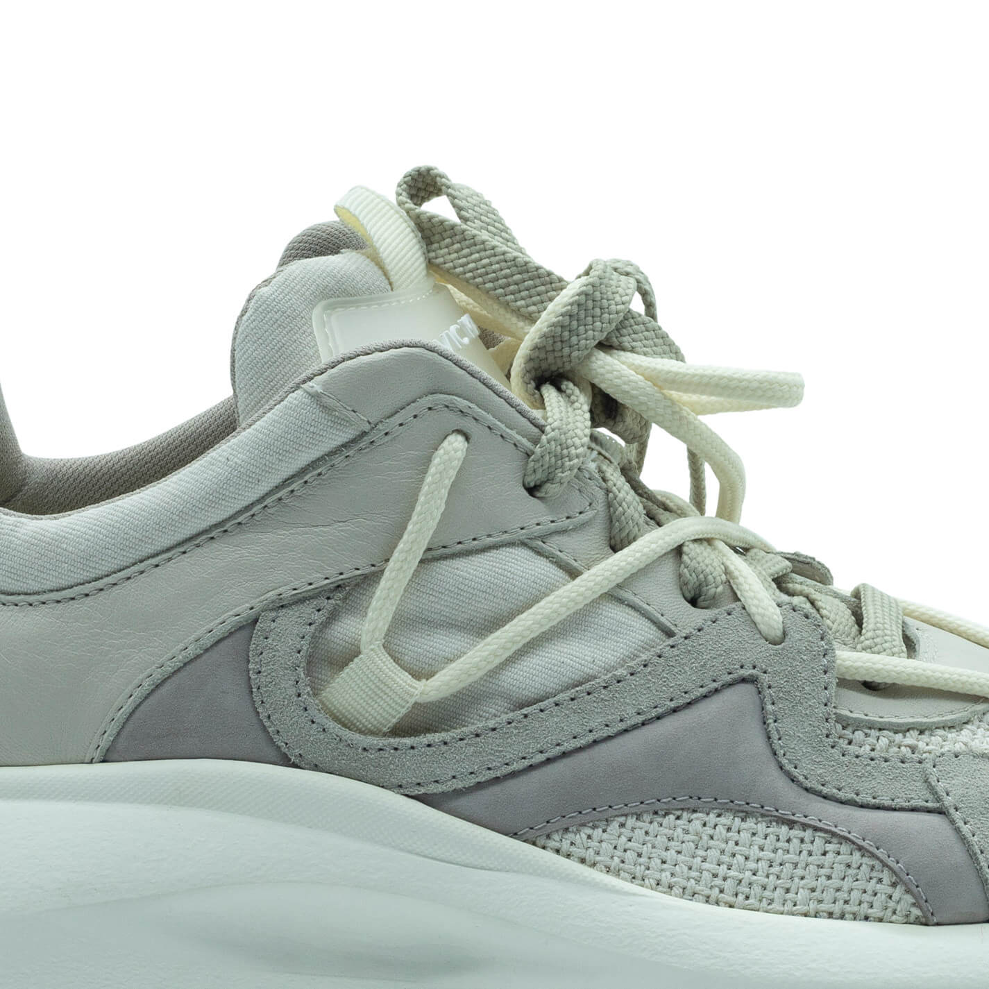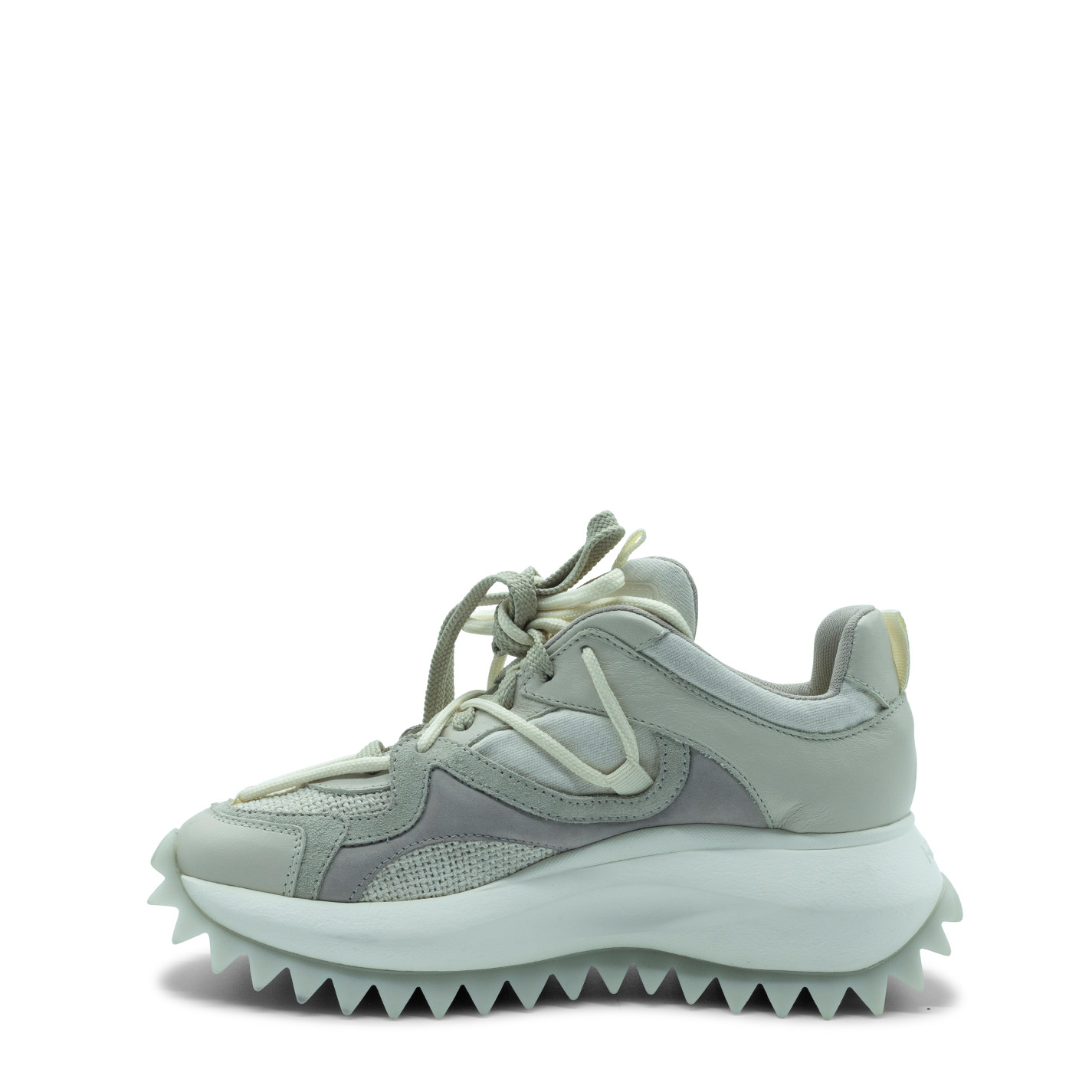 Running doppelte Schnürsenkel elfenbein/natur/beige aus Kalbsleder, Spaltleder und Baumwolle, doppelte Schnürung mit unterschiedlichen Schnürsenkeln. Extraleichte XL-Monoblock-Sohle mit Gummierung und Profil mit Maxi-Spikes, anatomisches Fußbett mit reiner Baumwolle. Hergestellt in Italien.