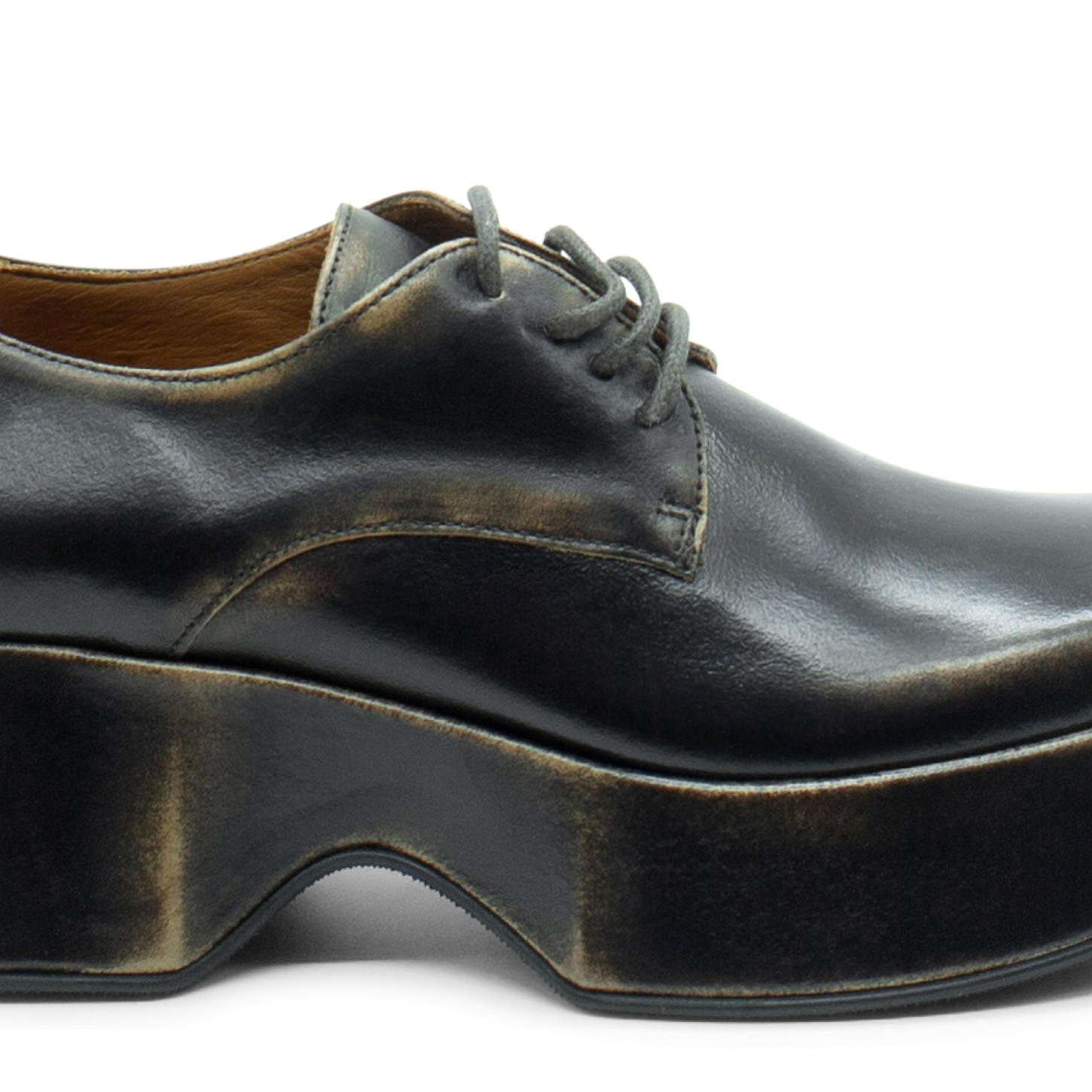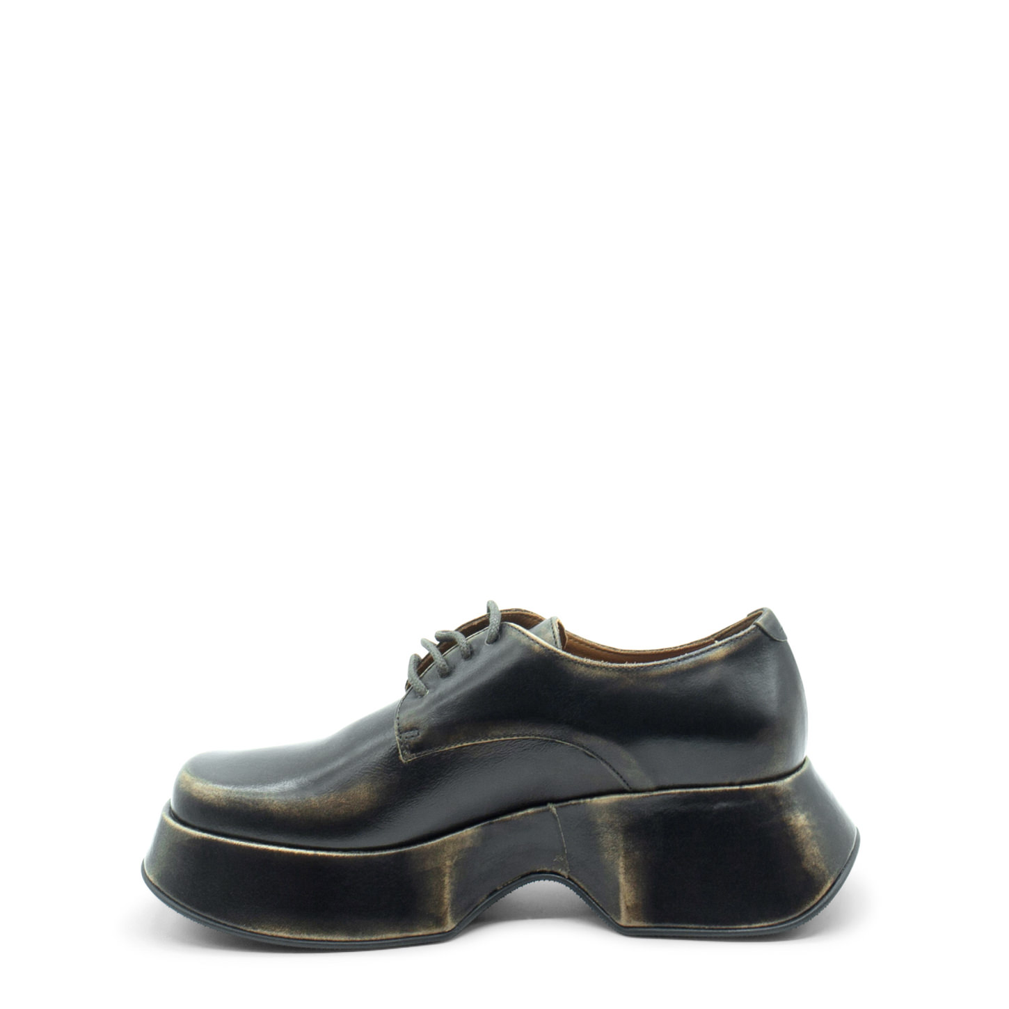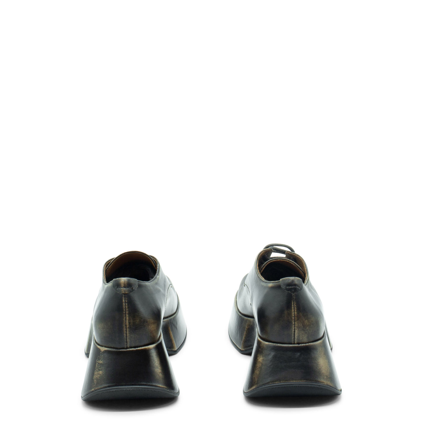 Der dunkelbraune Schnürer Mini Yoko mit Baumwollschnürsenkeln ist aus Kalbsleder mit Used-Effekt gefertigt. Gummisohle mit rutschfester Textur. Das Highlight ist das weiche Fußbett. Made in Italy.