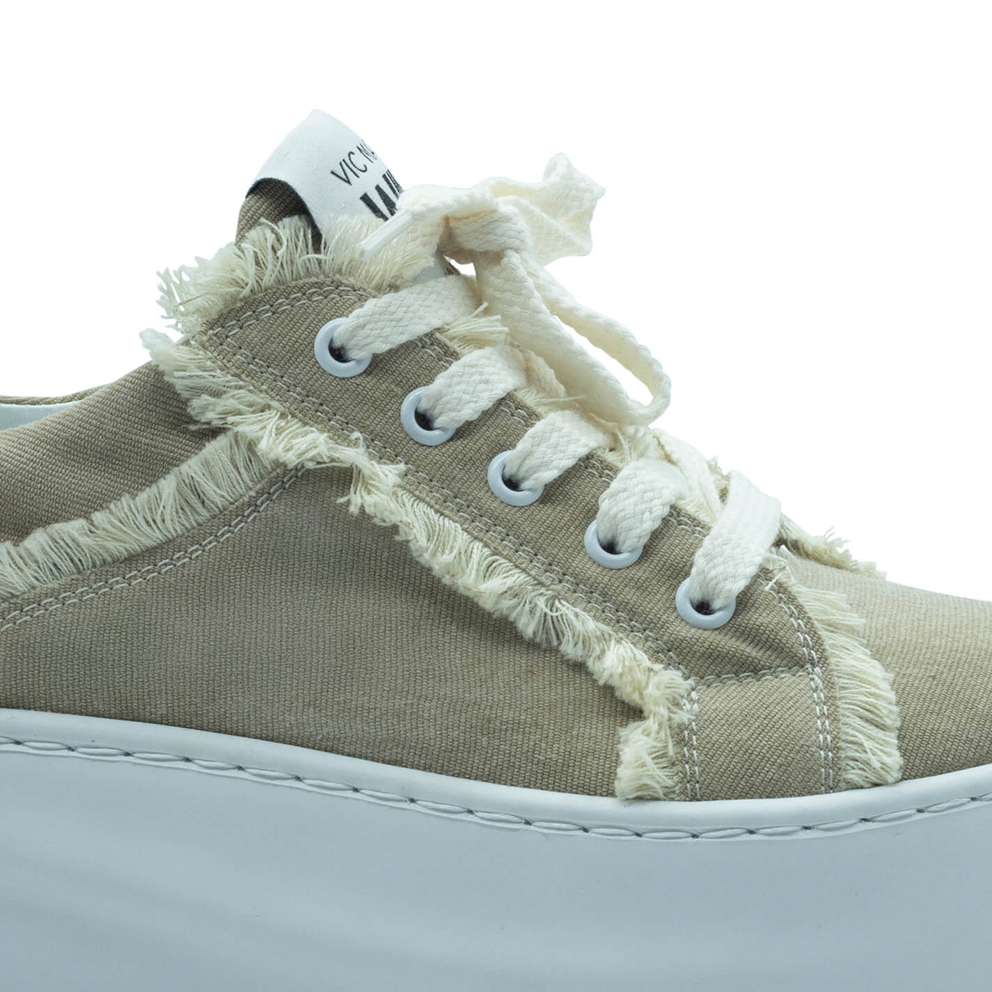 Wave Schuh Fransen Beigemit Logo-Lederspoiler, vollständig mit Fransen besetzt, Baumwollkordel. Futuristisches Design der Gummiplattform mit leichtem Außenwinkel, der Komfort und Modernität des Schuhs garantiert, Fußbett mit Kalbsleder bezogen. Hergestellt in Italien.