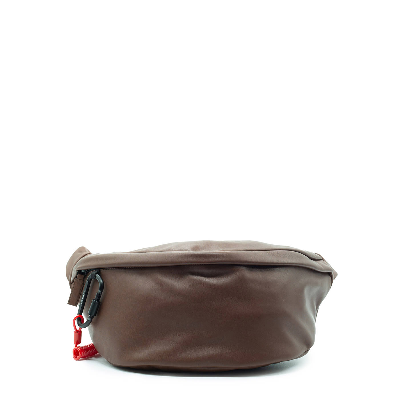 Biscuit maxi waist bag, crafted from soft Nappa calfskin. It features a big zip fastening, leather waist coin purse with handy openings and wrist strap, and adjustable belt to wear it on the waist or as a shoulder bag.