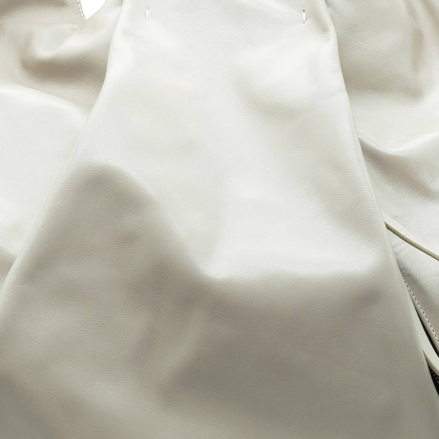 Dove grey pleated maxi shopper, crafted from smooth calfskin. It features leather handles, hidden front pocket, snap button fastening and front metal logo.