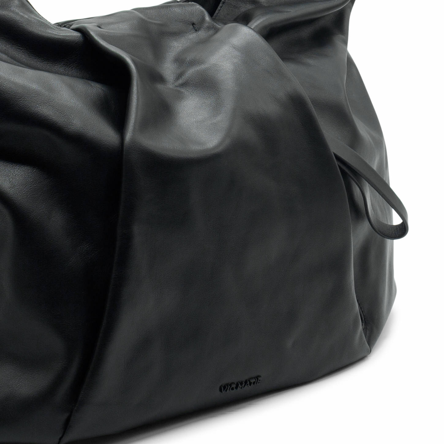 Black pleated maxi shopper, crafted from smooth calfskin. It features leather handles, hidden front pocket, snap button fastening and front metal logo.