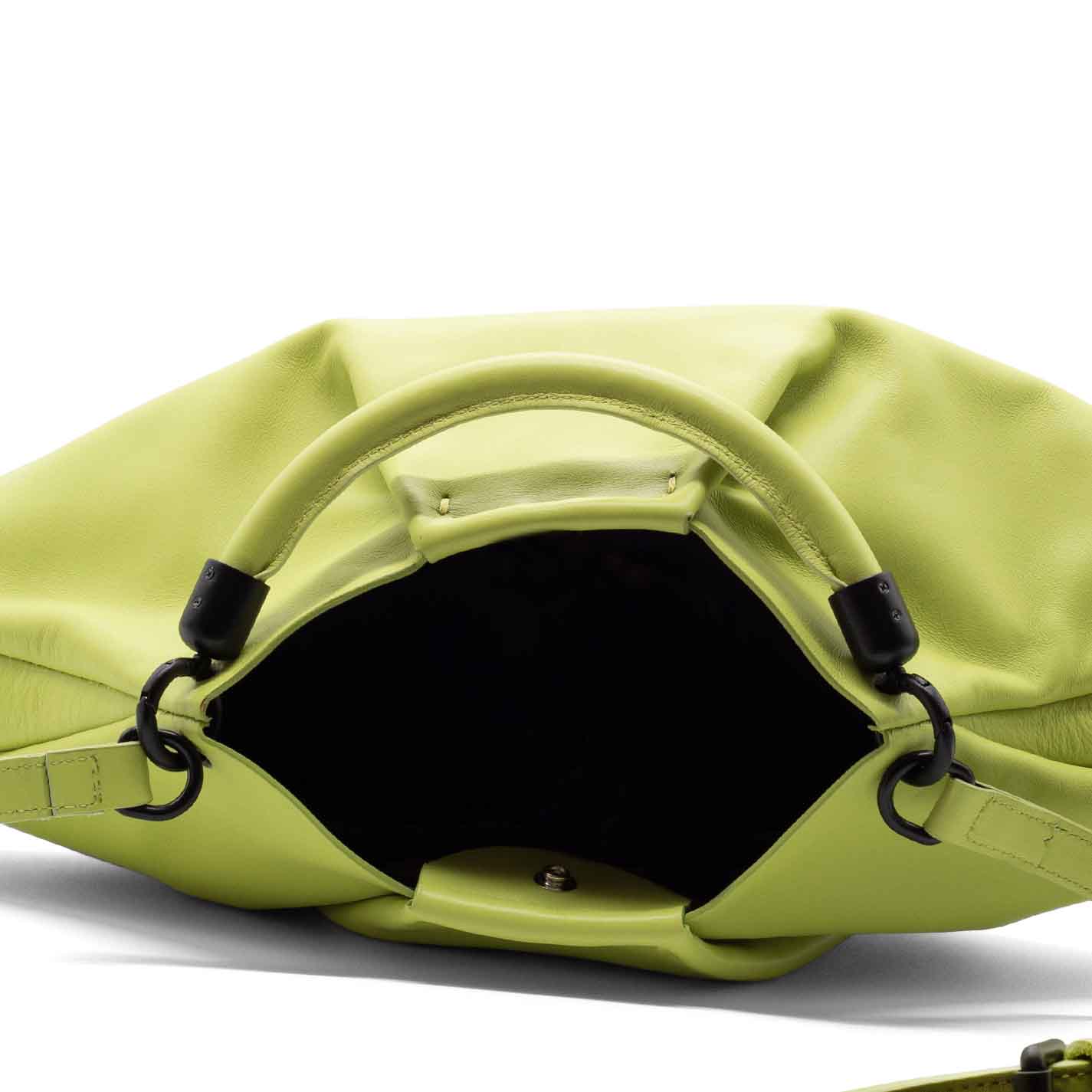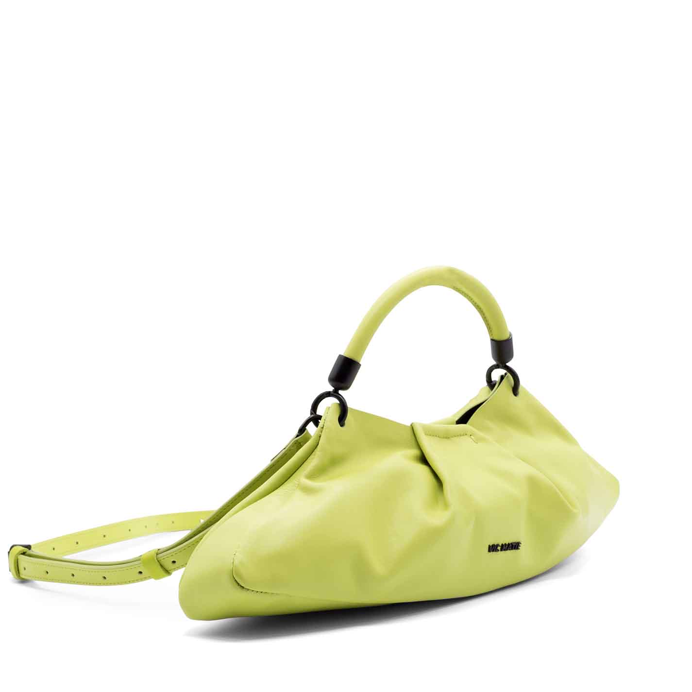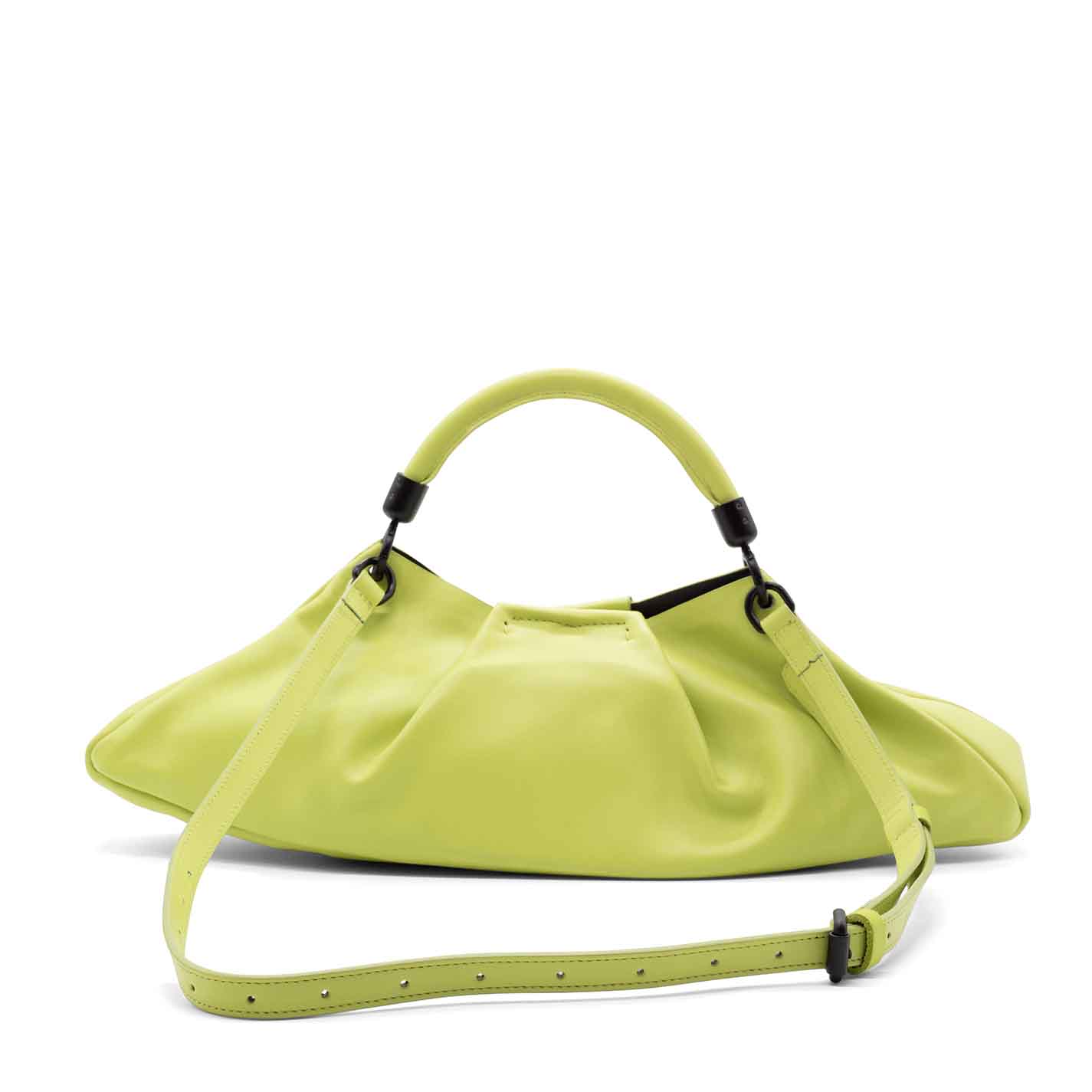 cedar baguette bag in smooth calfskin with pleating on the front, removable leather shoulder strap and handles, press-stud fastening and metal logo on the front.