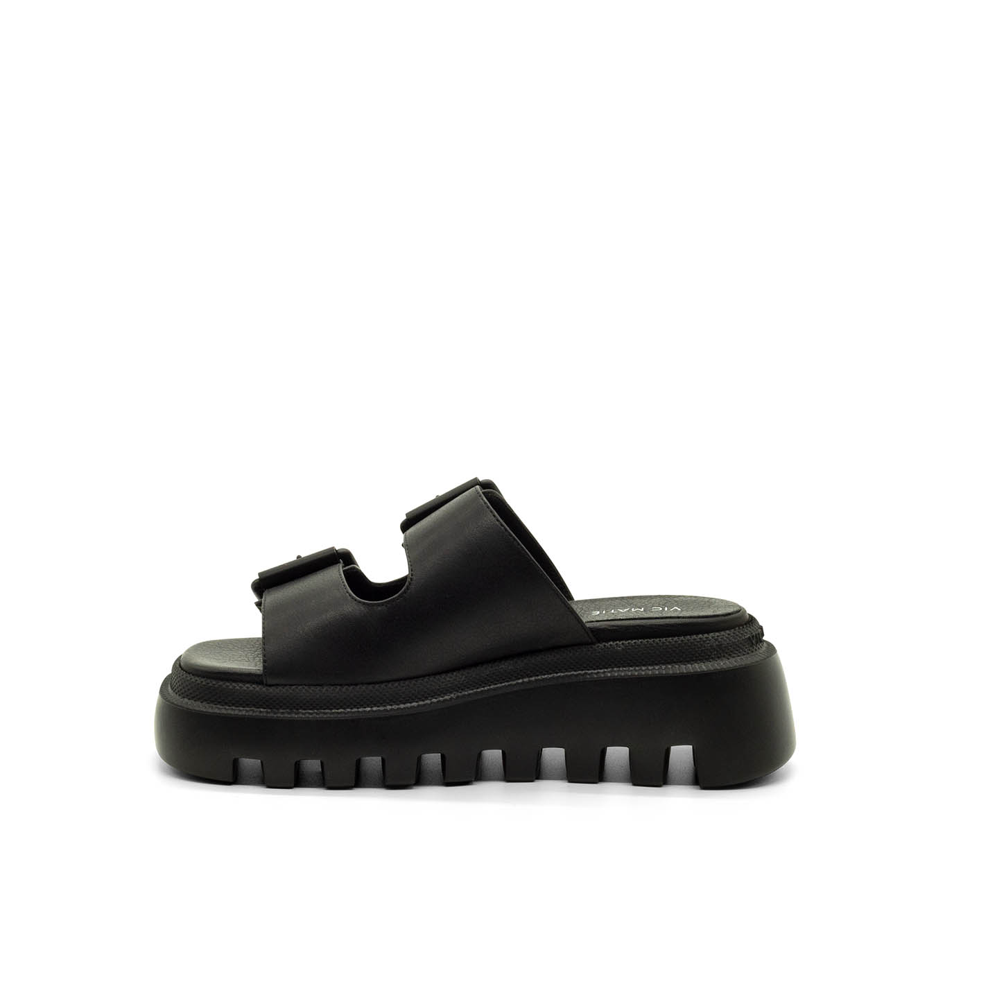 Black gear slip-ons in nappa calfskin, with tone-on-tone adjustable buckles. The sole, made from ultra-light foam material, has strips that look like the notches of a gear. Soft leather-covered insole. Made in Italy.
