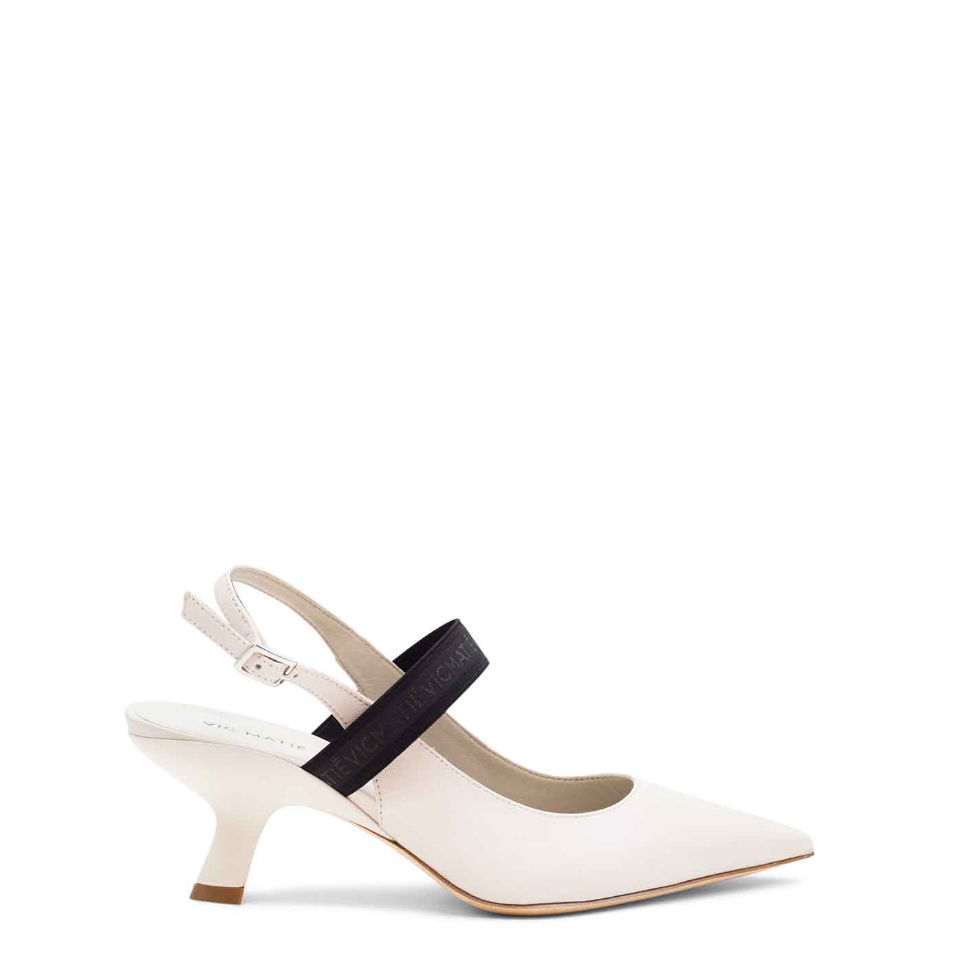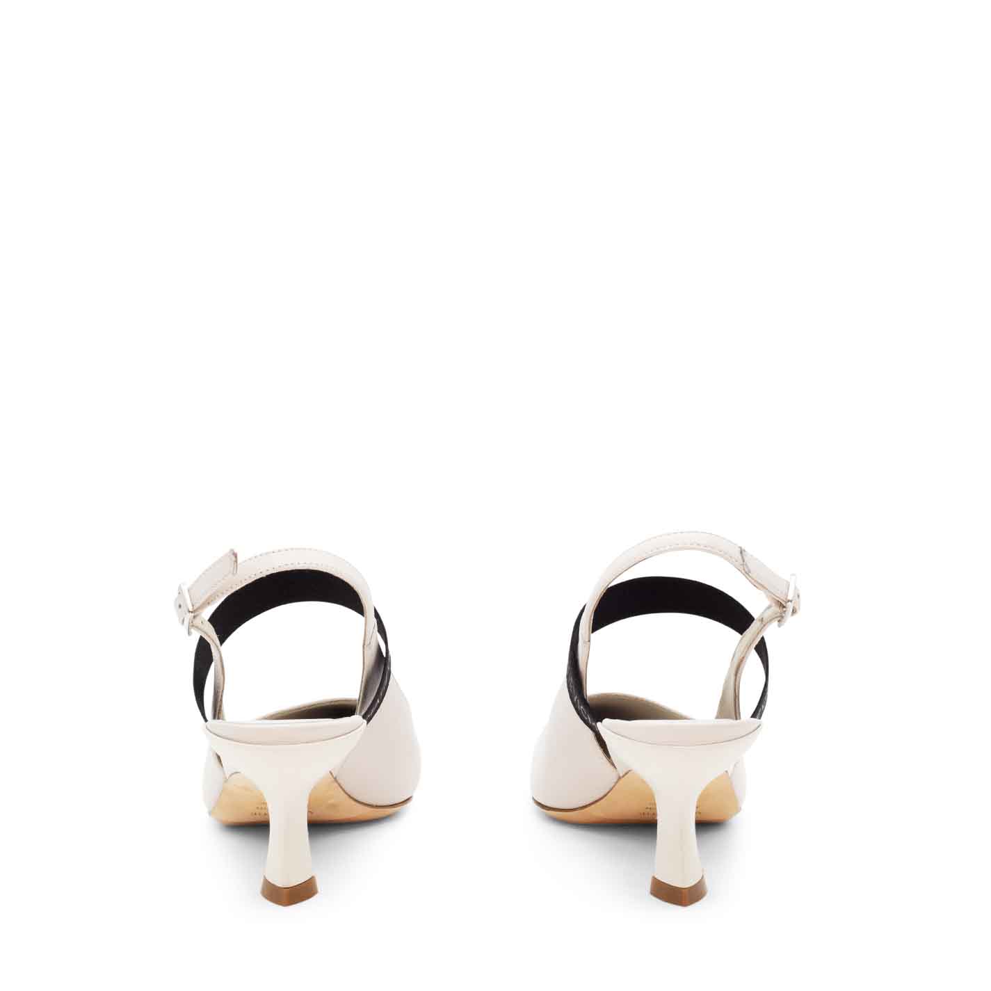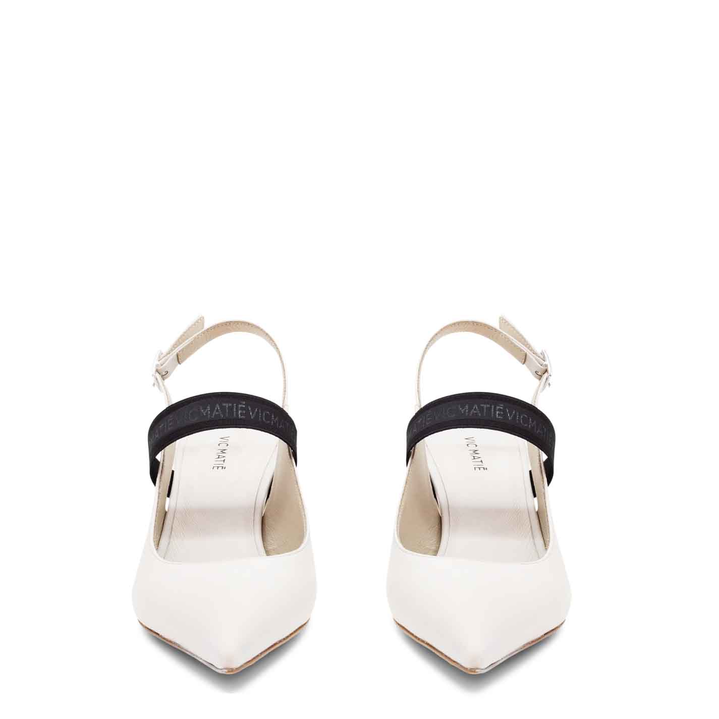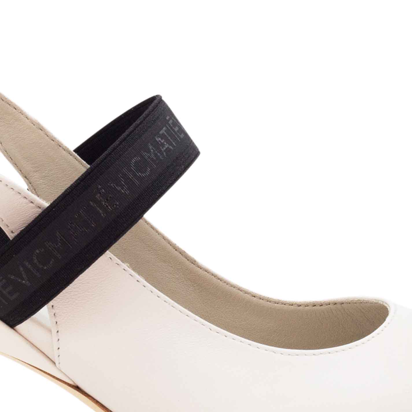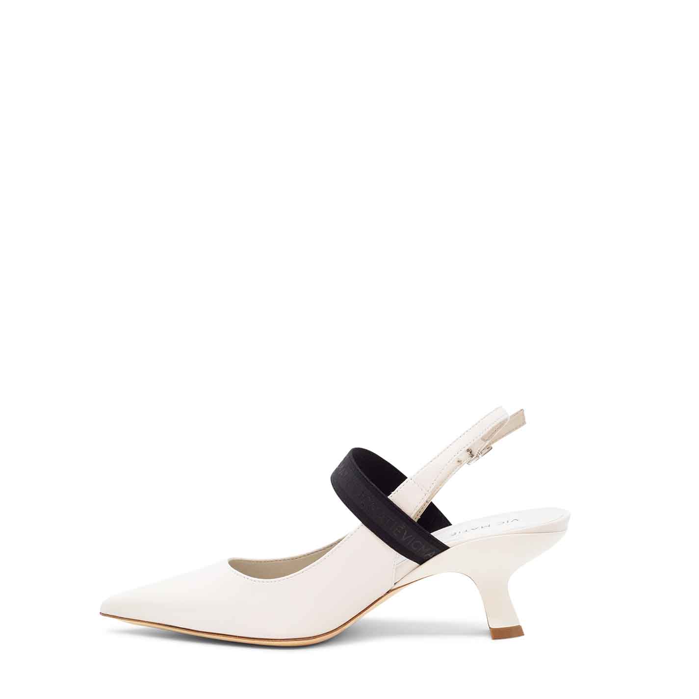 Chanel slash pumps in soft ice-white nappa with contrasting branded elastic band. Very feminine pointed-toe shape and "slash" heel with matt finish. Leather sole. Made in Italy.