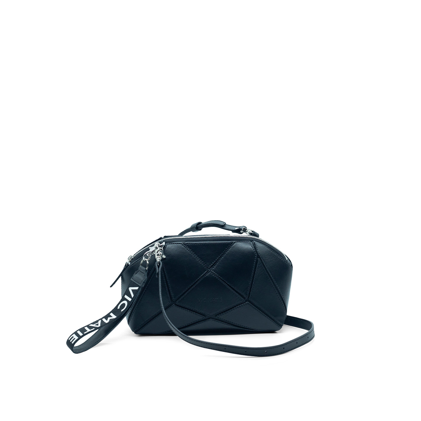 Black patch pouchin smooth calfskin. Characterized by geometric shapes in stitched leather;