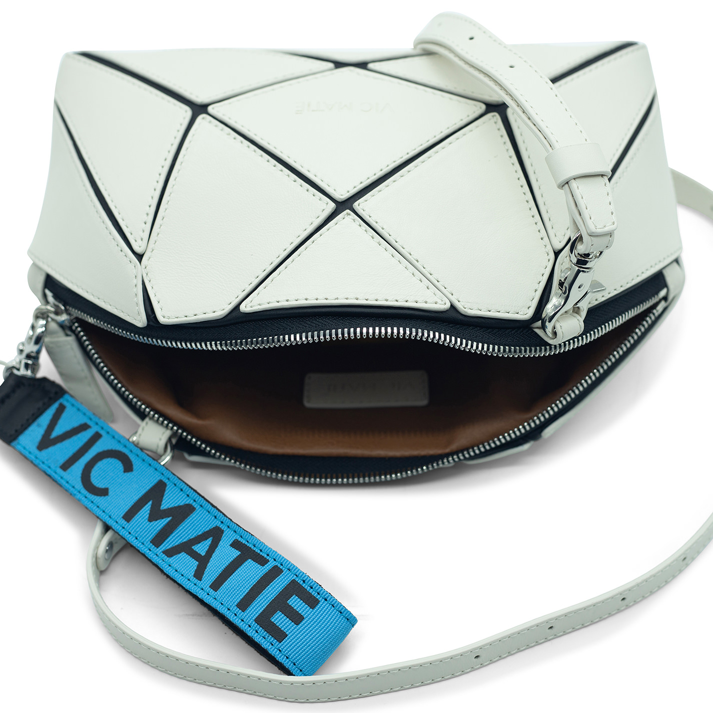 Cream patch pouchin smooth calfskin. Characterized by geometric shapes in stitched leather;