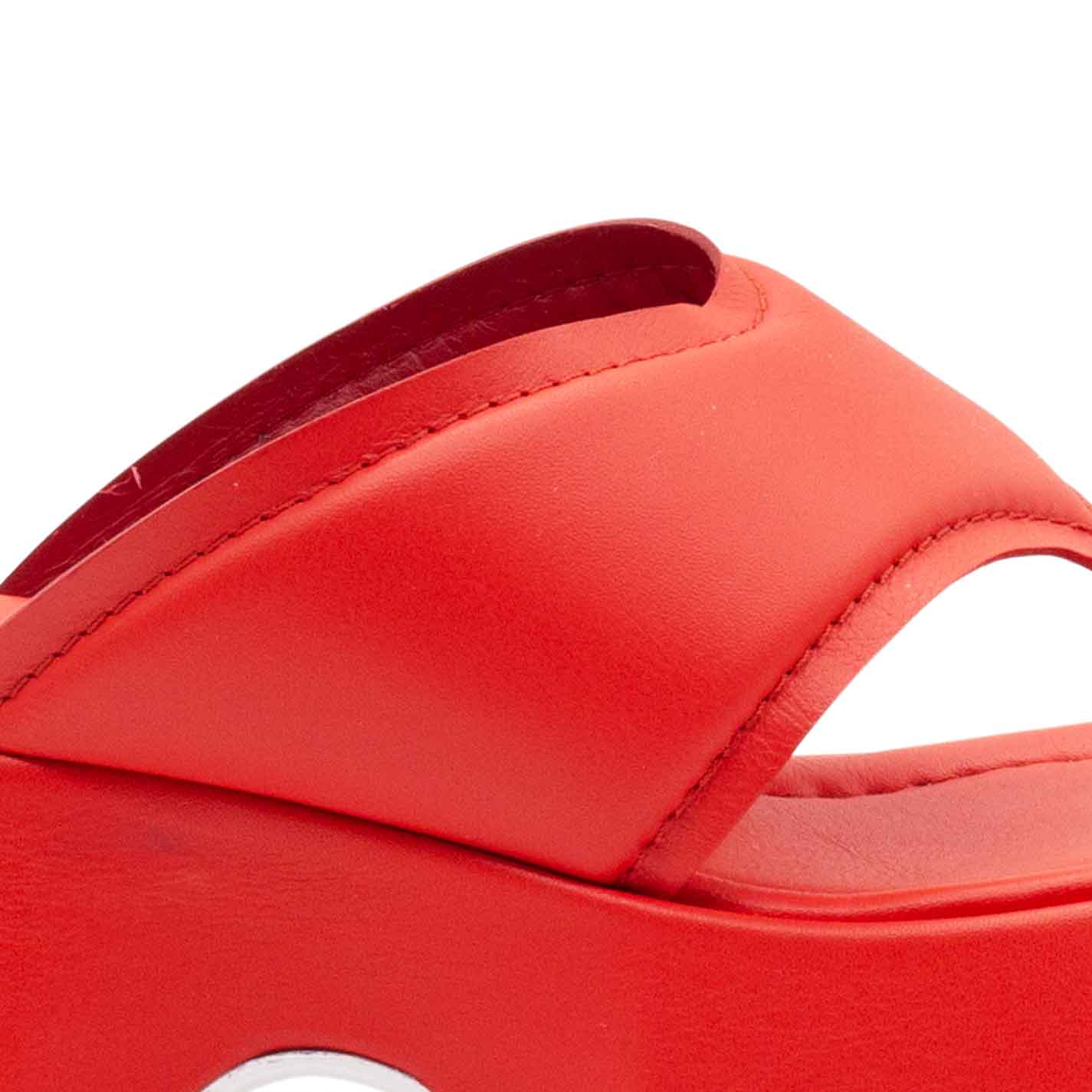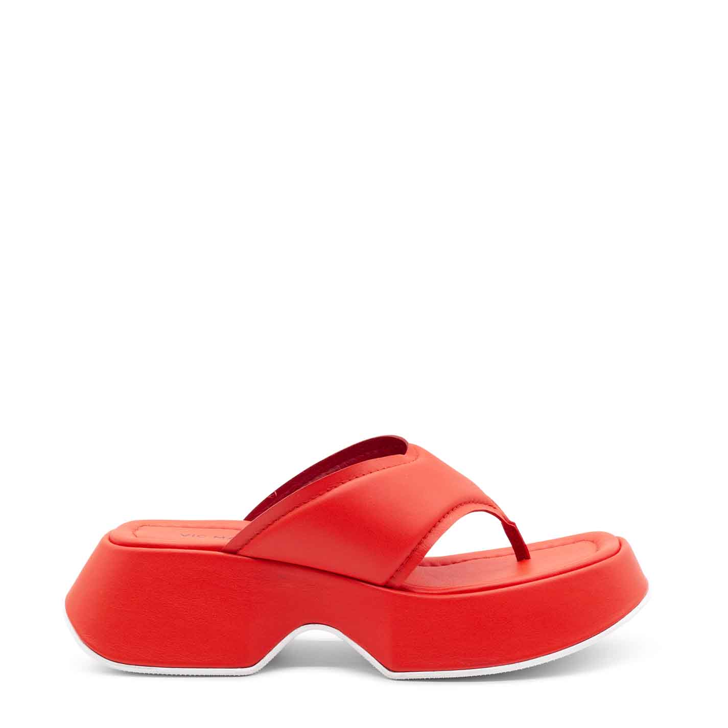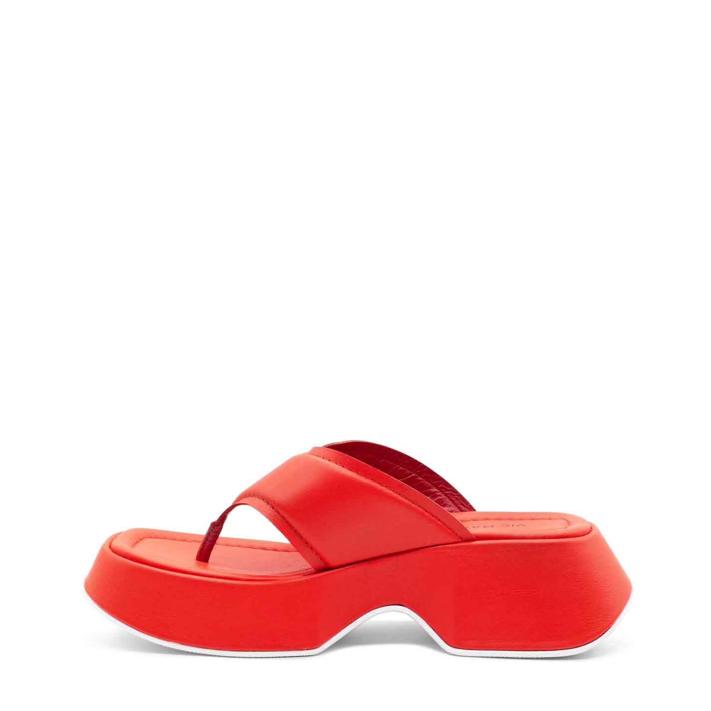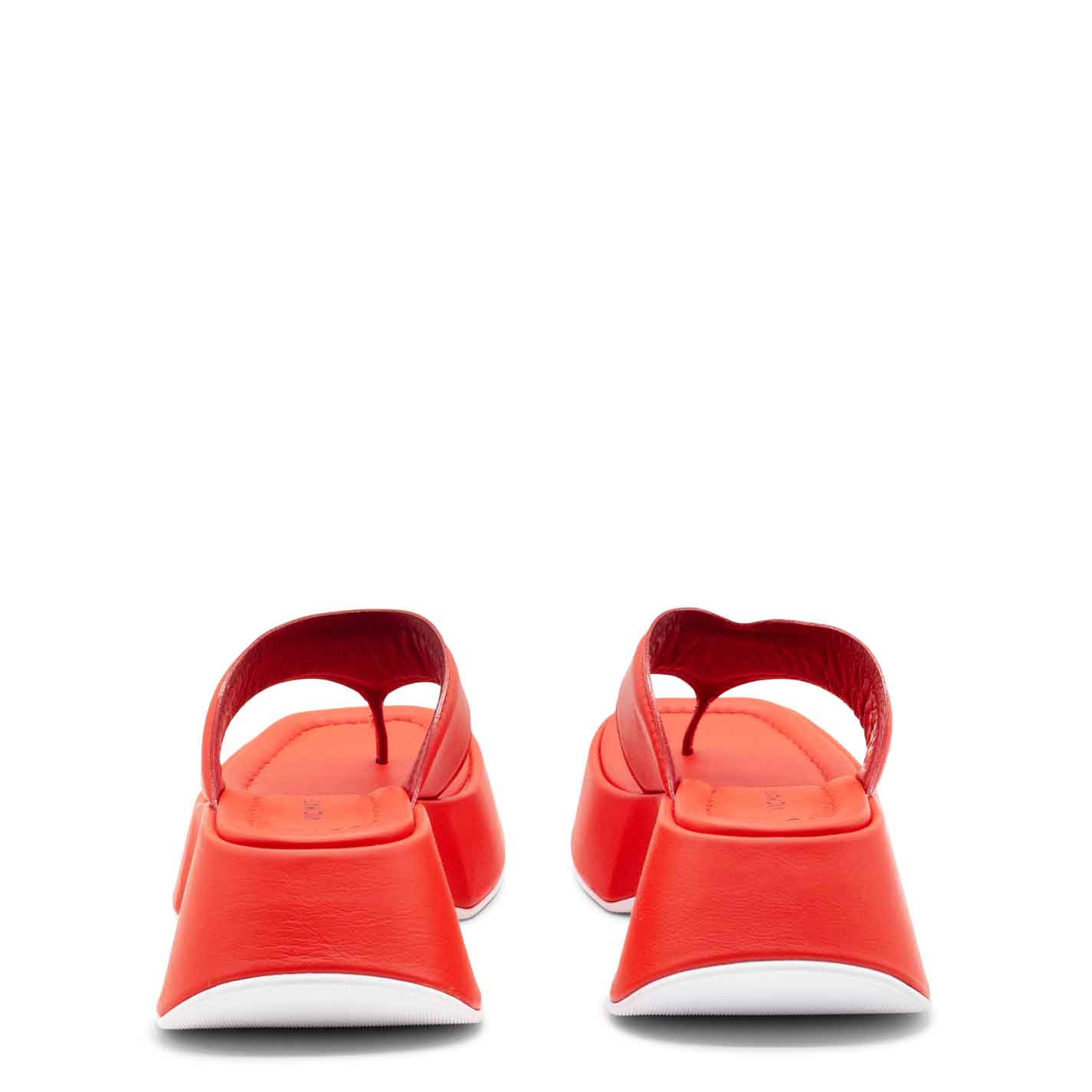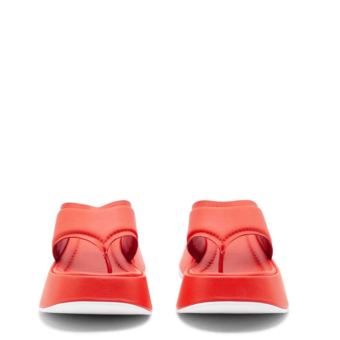 Coral Mini Yoko thong sandals in soft nappa calfskin with raised texture and thermoformed inner rubber. "Flared" platform covered with the same leather used for the upper. Comfortable padded insole. Rubber sole with non-slip texture. Made in Italy.