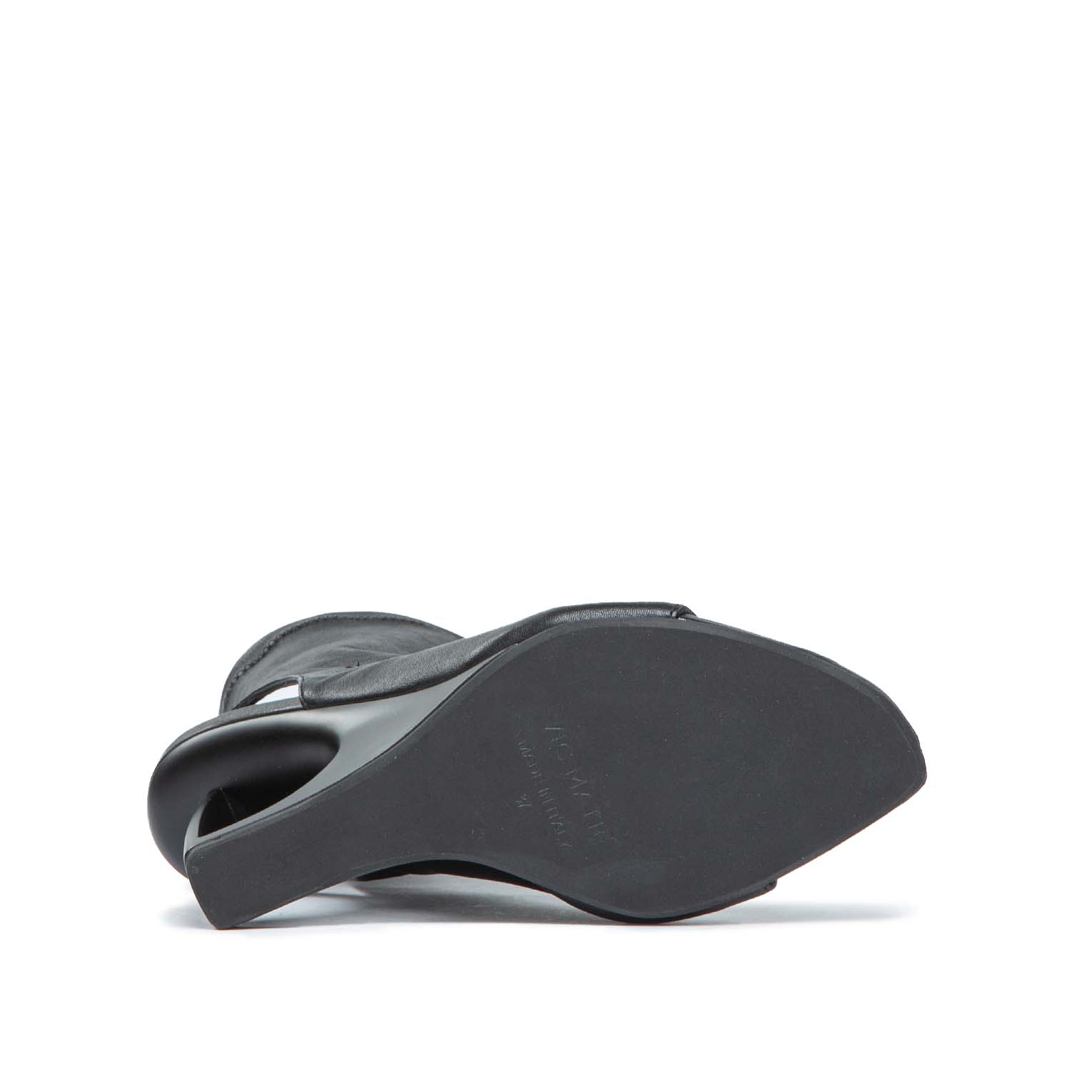 D Open black ankle bootmade of soft stretch nappa, open toe on the front and open heel on the back. Wedge heel in patent abs, the design that interprets the D of woman. Non-slip rubber sole. Made in Italy.