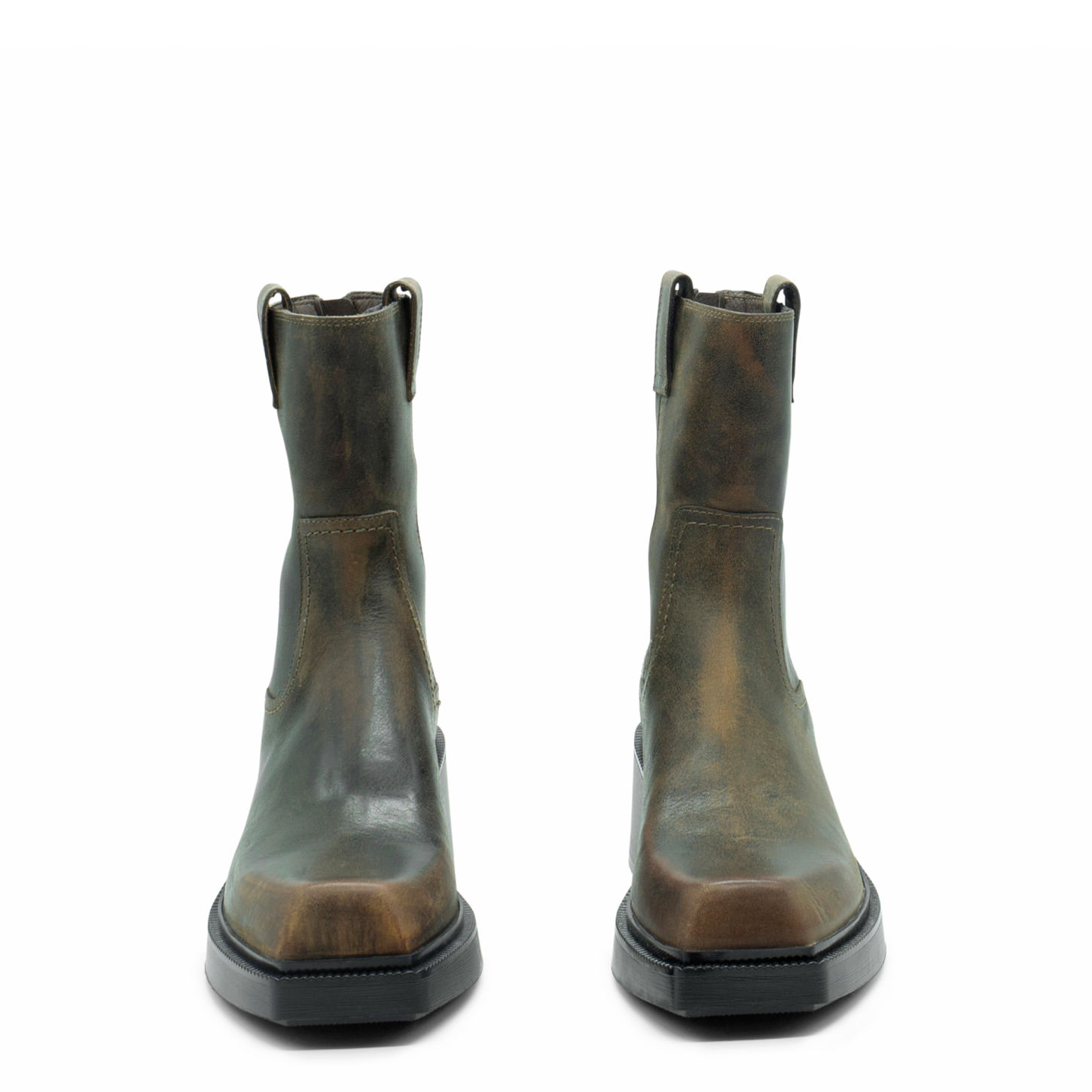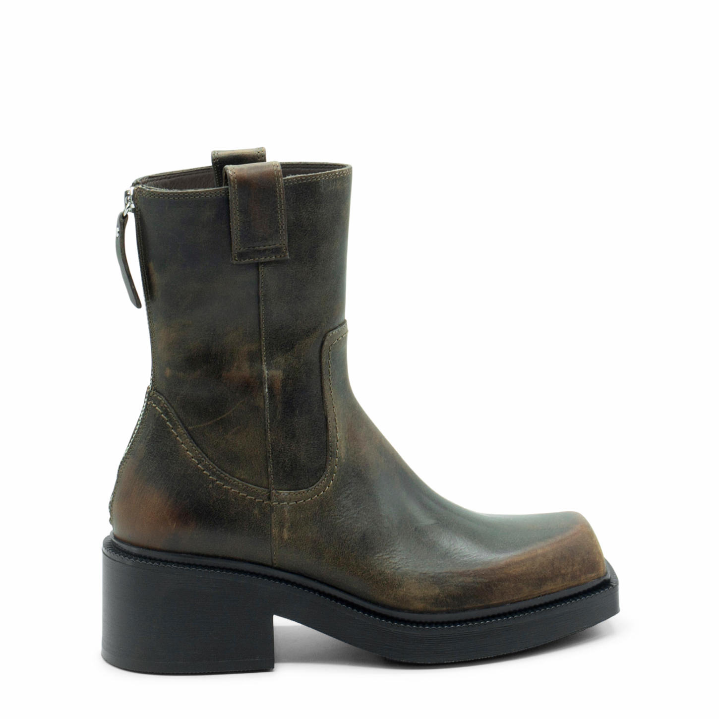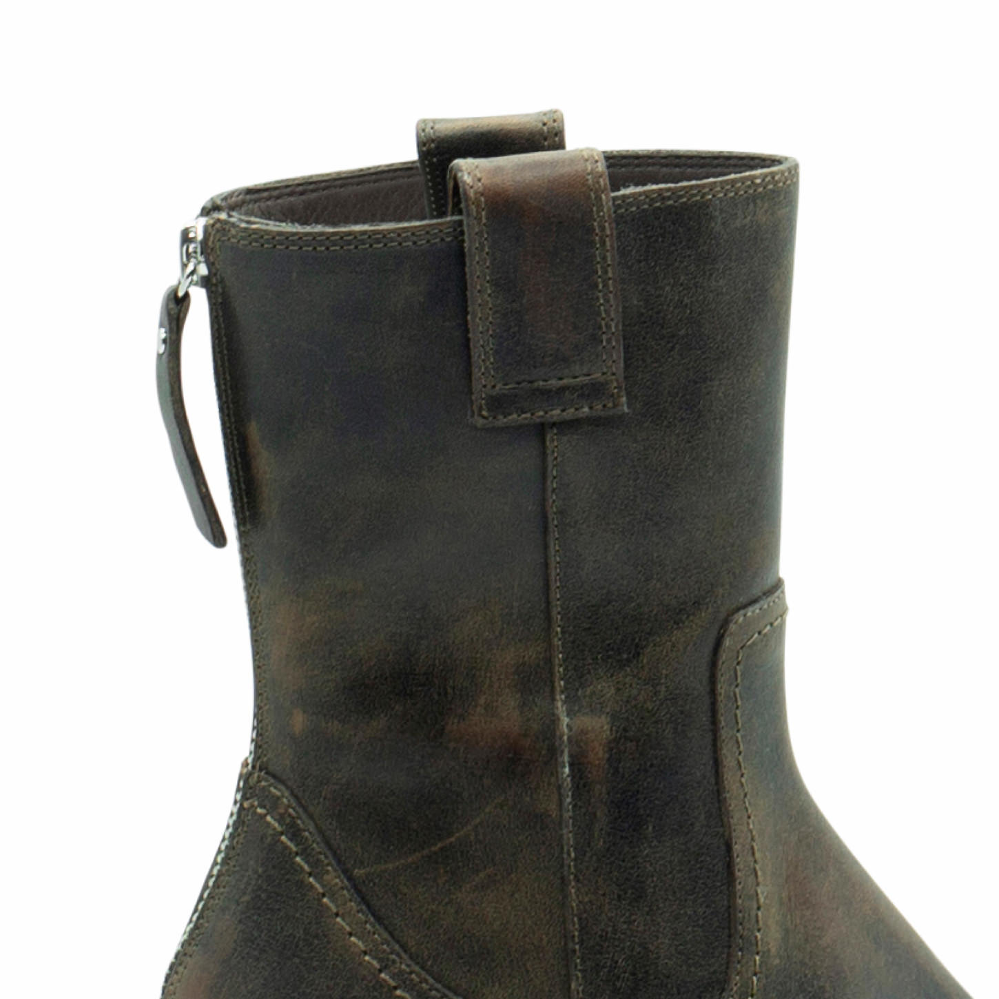 Fray biscuit half boots, crafted from vintage calfskin. They feature a back metal zip, side leather zip pullers, and a soft footbed covered in leather. Made in Italy.