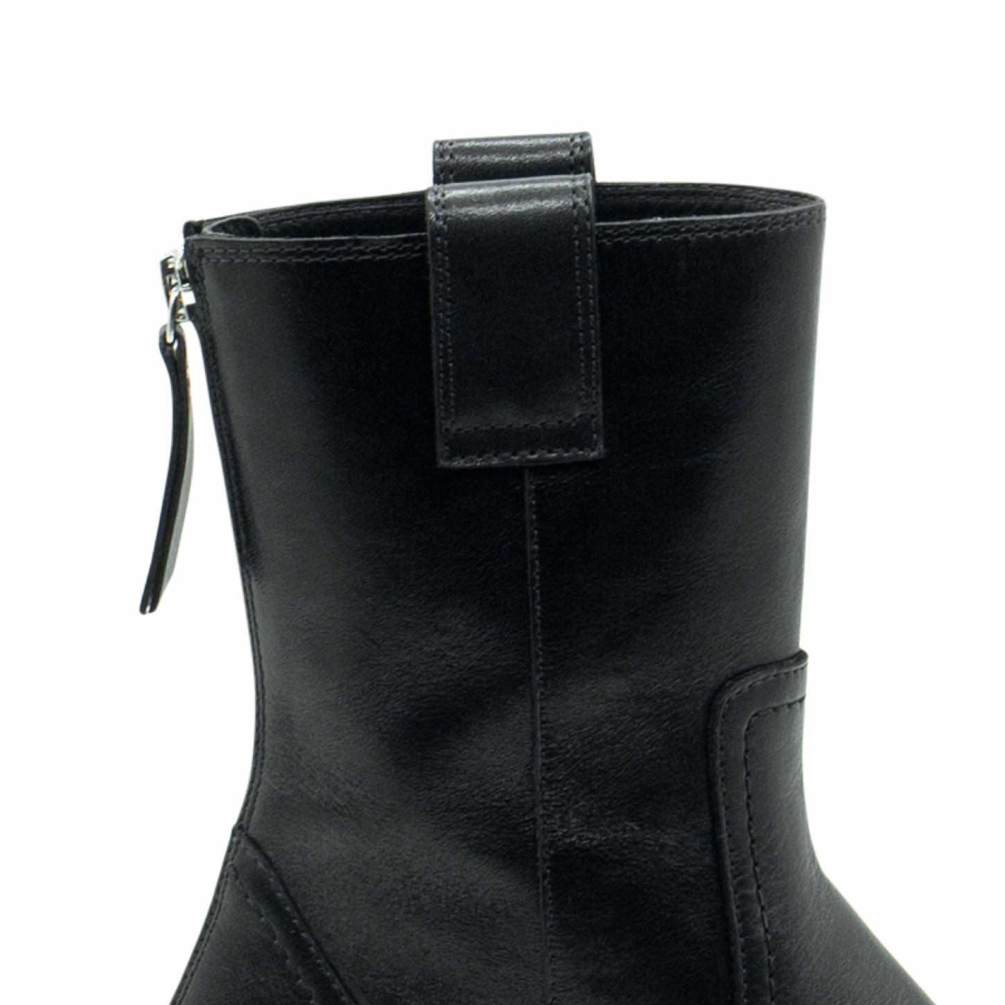 Fray black half boots, crafted from shiny calfskin. They feature a back metal zip, side leather zip pullers, and a soft footbed covered in leather. Made in Italy.