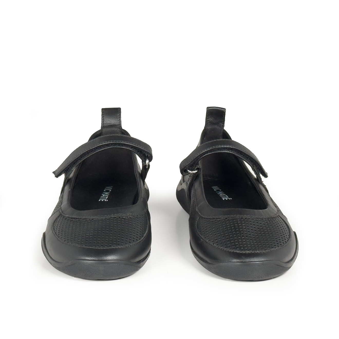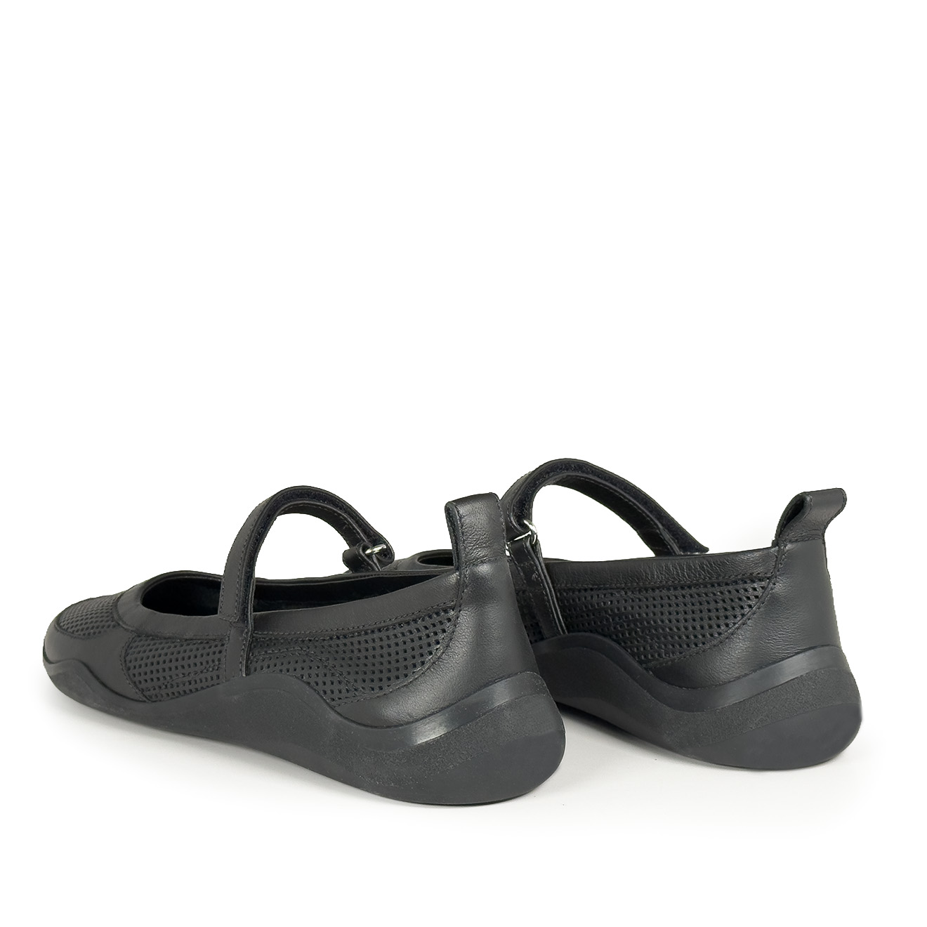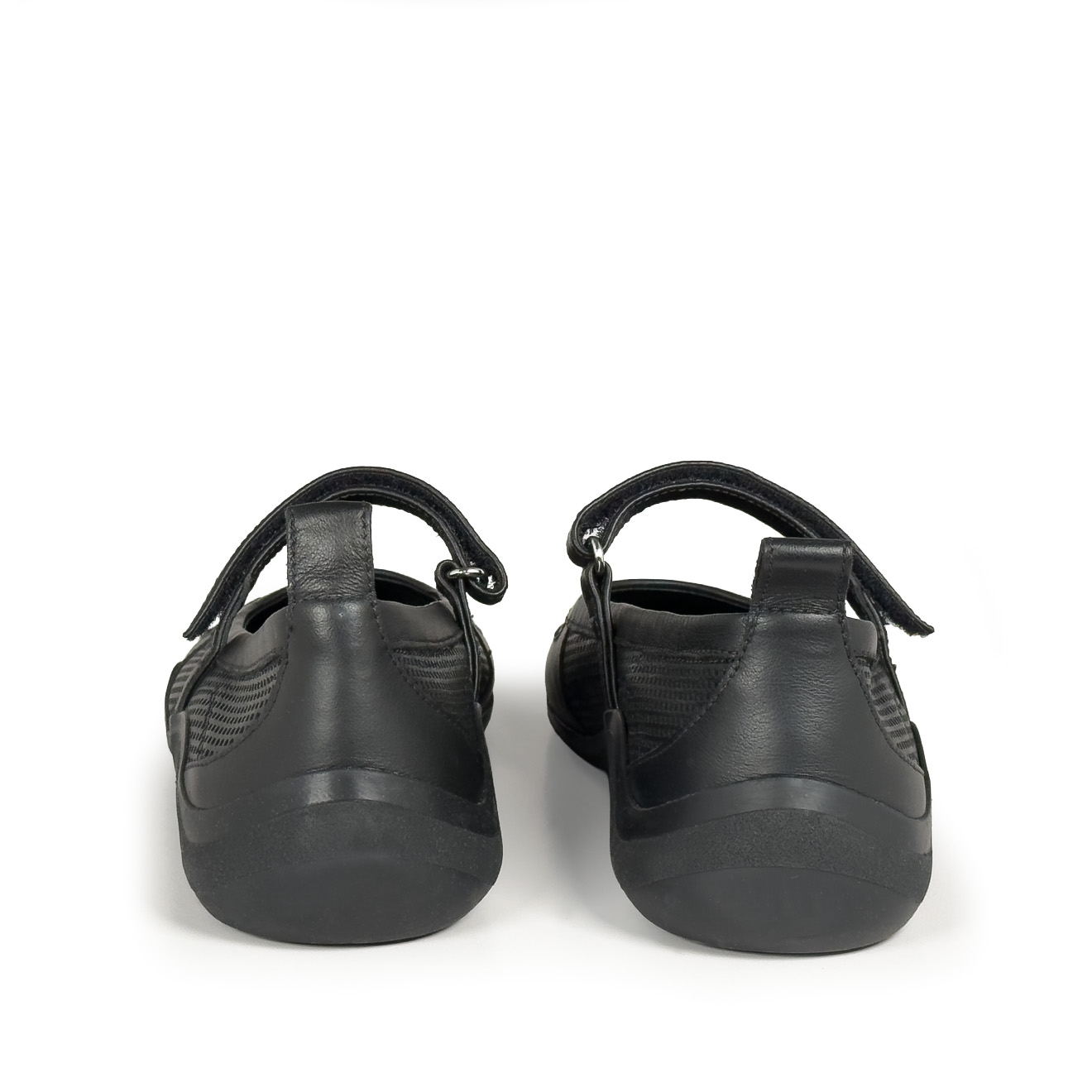 G32_Ondina Black low-top ballerina, made of split leather and technical fabric with a Mary Jane cut and velcro strap with ring for a stable fit. Flexible rubber sole with a wavy non-slip profile, rear pull-tab and leather insole. Lightweight, comfortable and versatile, perfect for casual or sporty looks to wear all day long.