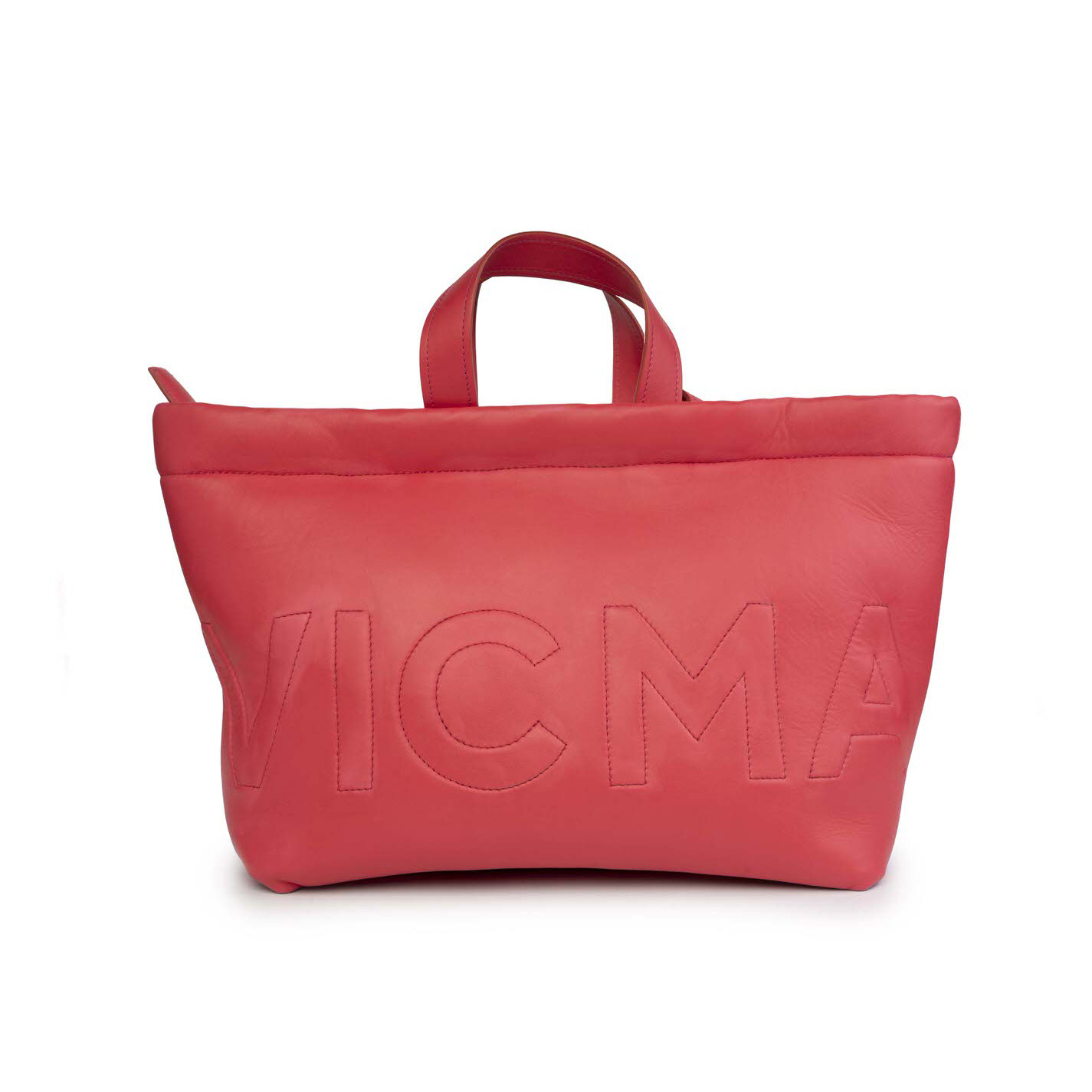 Large hibiscus shopper bag in smooth and lightly padded calfskin, with embroidered logo and two leather handles that allow you to carry it by hand or on the shoulder. Metal zip fastening. Two handles of different length.