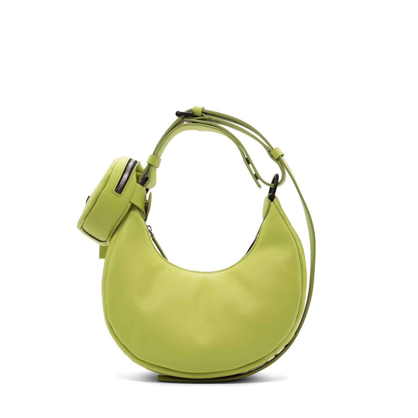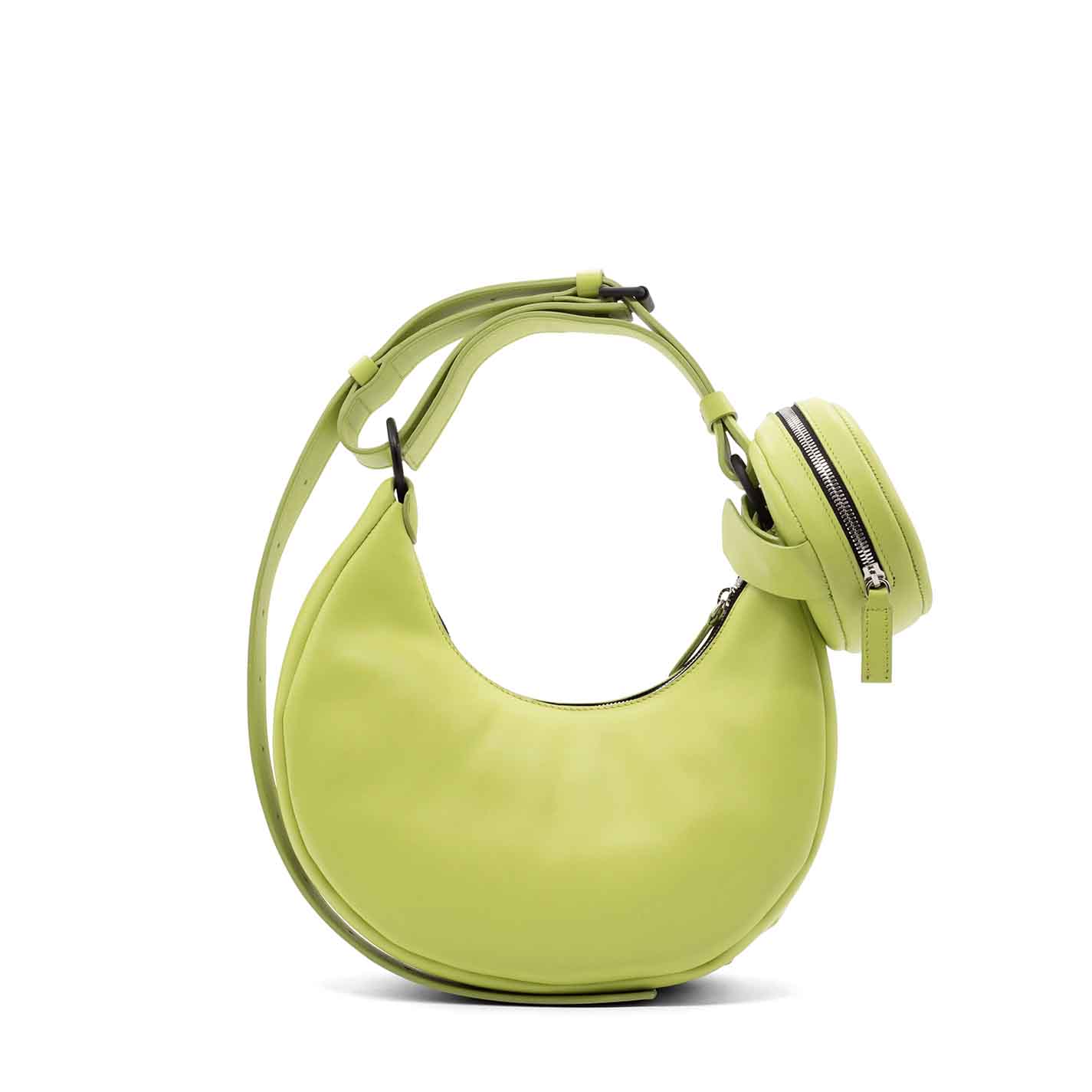Cedar crossbody bag in smooth, structured calfskin, with 3D logo at the bottom. Adjustable and removable shoulder strap, and metal zip fastening. Removable, branded round pouch that you can carry on your wrist thanks to the wristlet included.