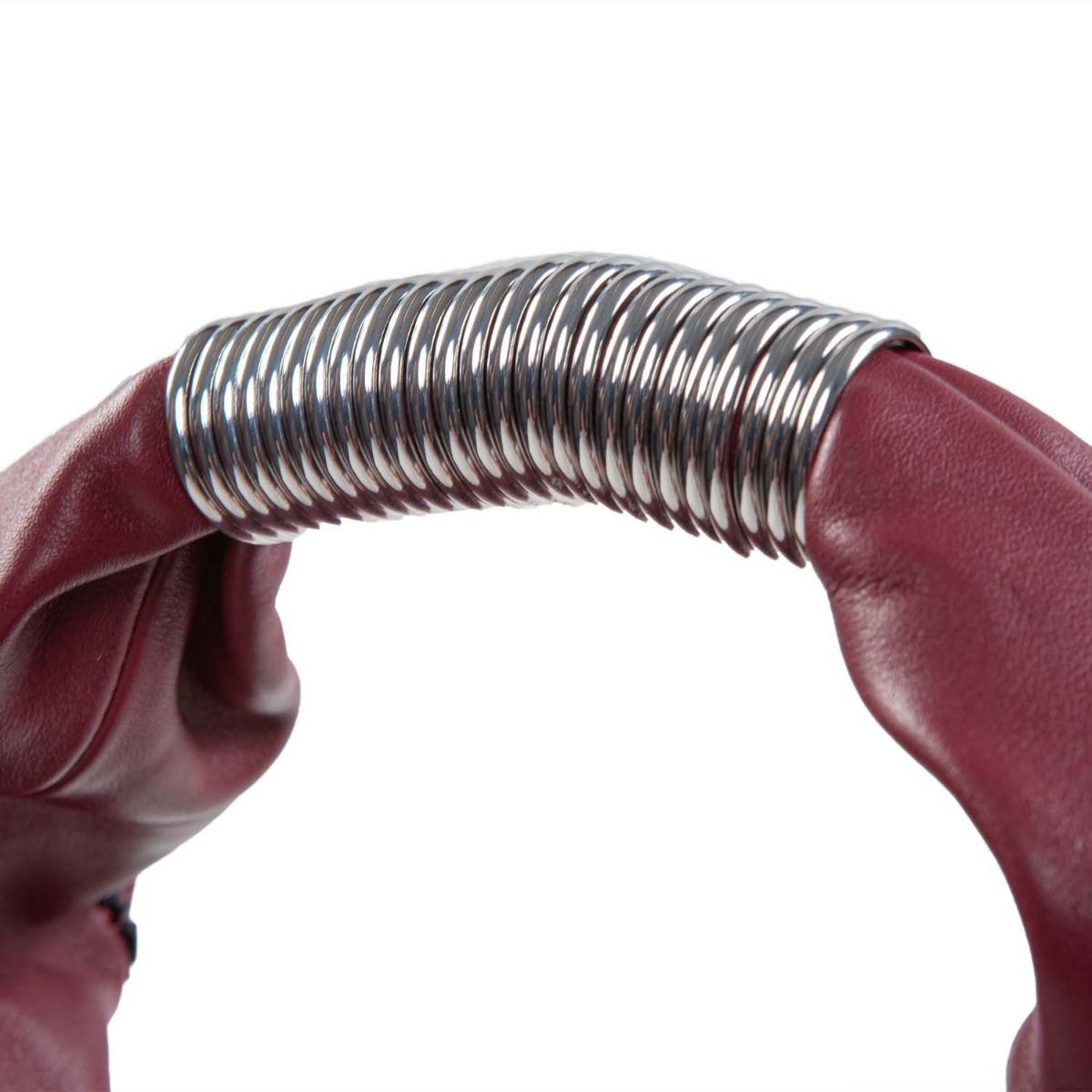 Dark red hobo bag in soft calf nappa with flexible spring handle, metal zip closure and side logo. Leather shoulder strap included.