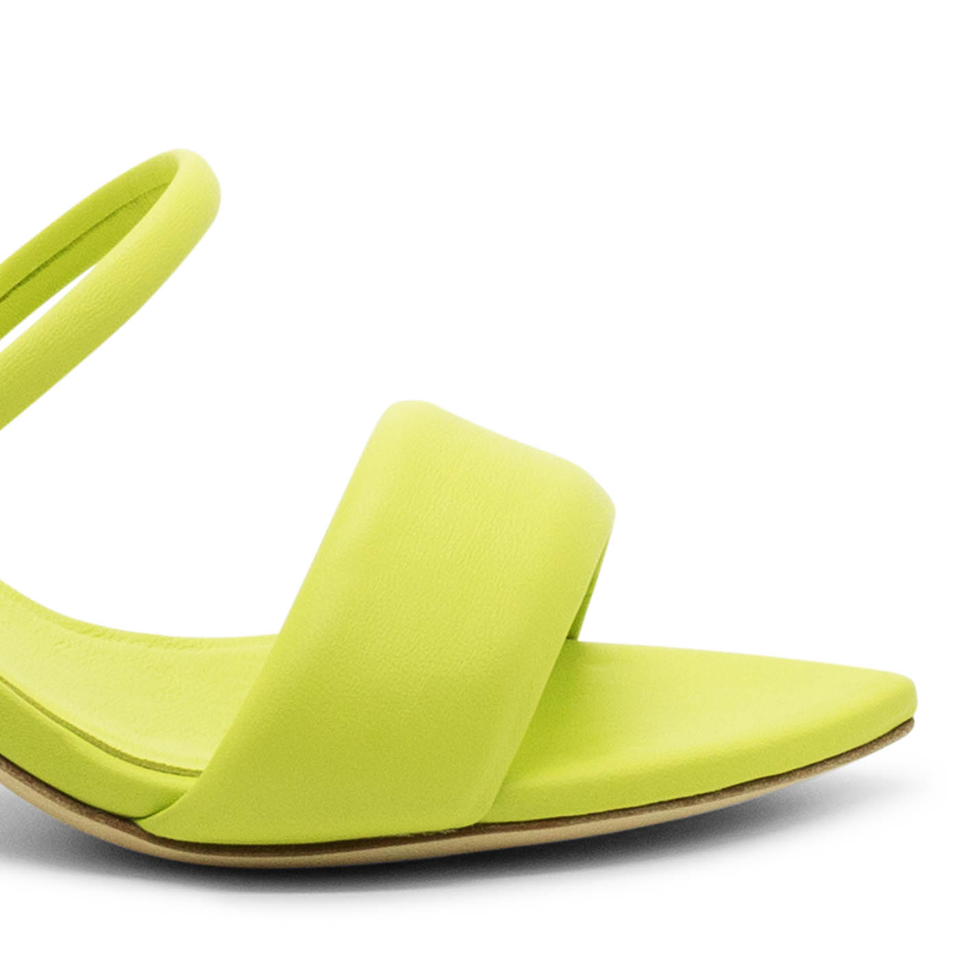 Lime slash slip-ons in soft nappa leather, with band and curved strip. Leather sole with open toe, leather-covered insole, and matt coated heel. Made in Italy.