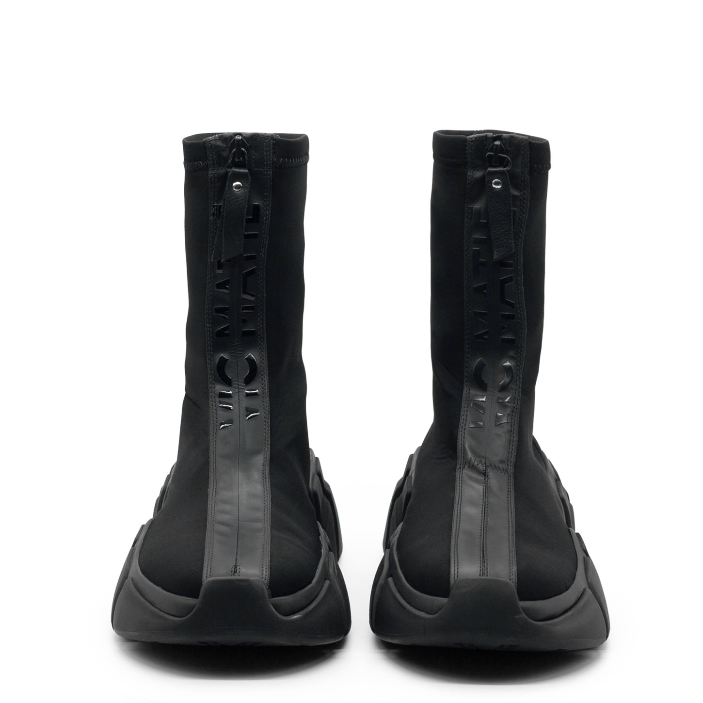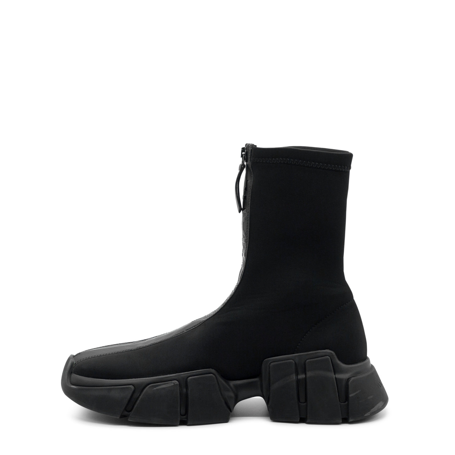 Mano black zipped half boots, crafted from double stretch Lycra, with branded rubber front zip. This model is fitted with a one-piece rubberised sole with ribs, inspired by a "hand" holding a shoe, and a soft footbed covered in leather. Made in Italy.