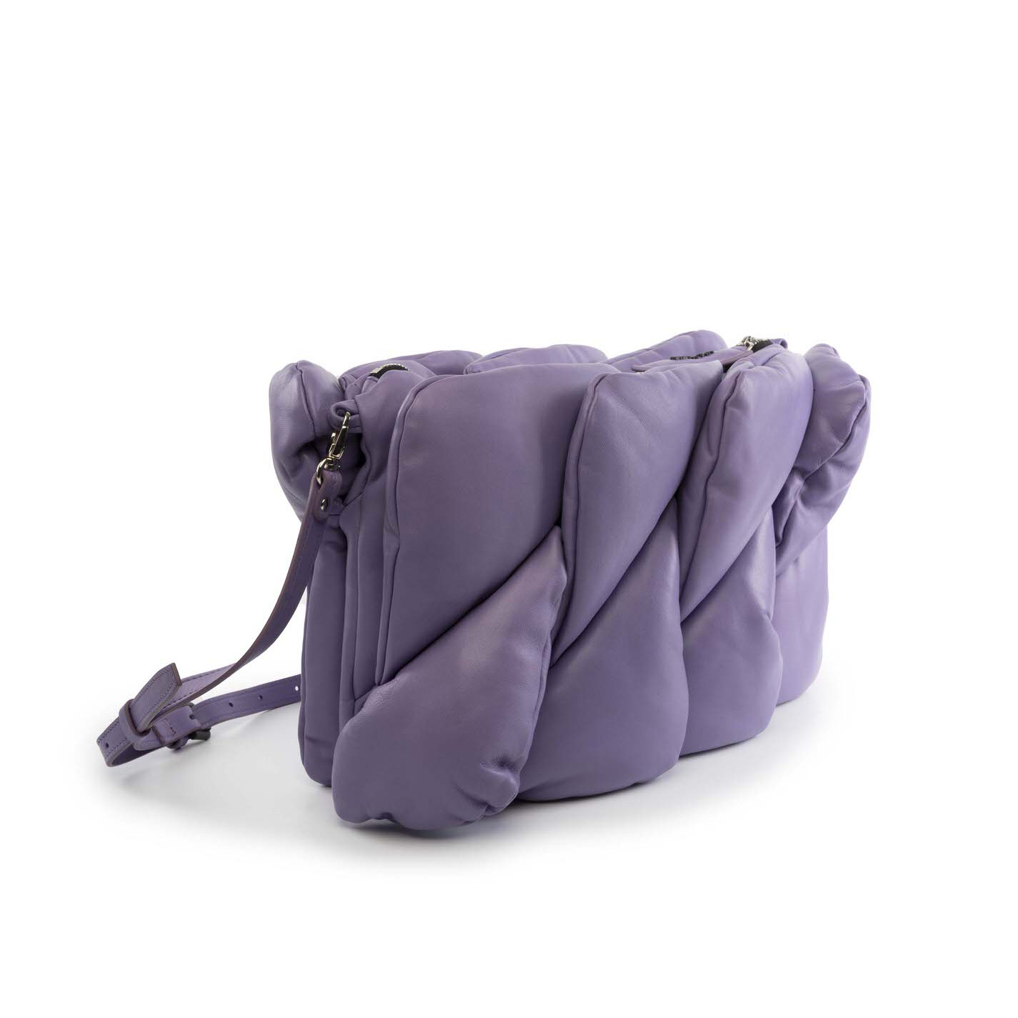 Purple shoulder bag in soft nappa leather, with padded maxi scale-effect sides, removable and adjustable shoulder strap, zip fastening and leather pull with metal logo.