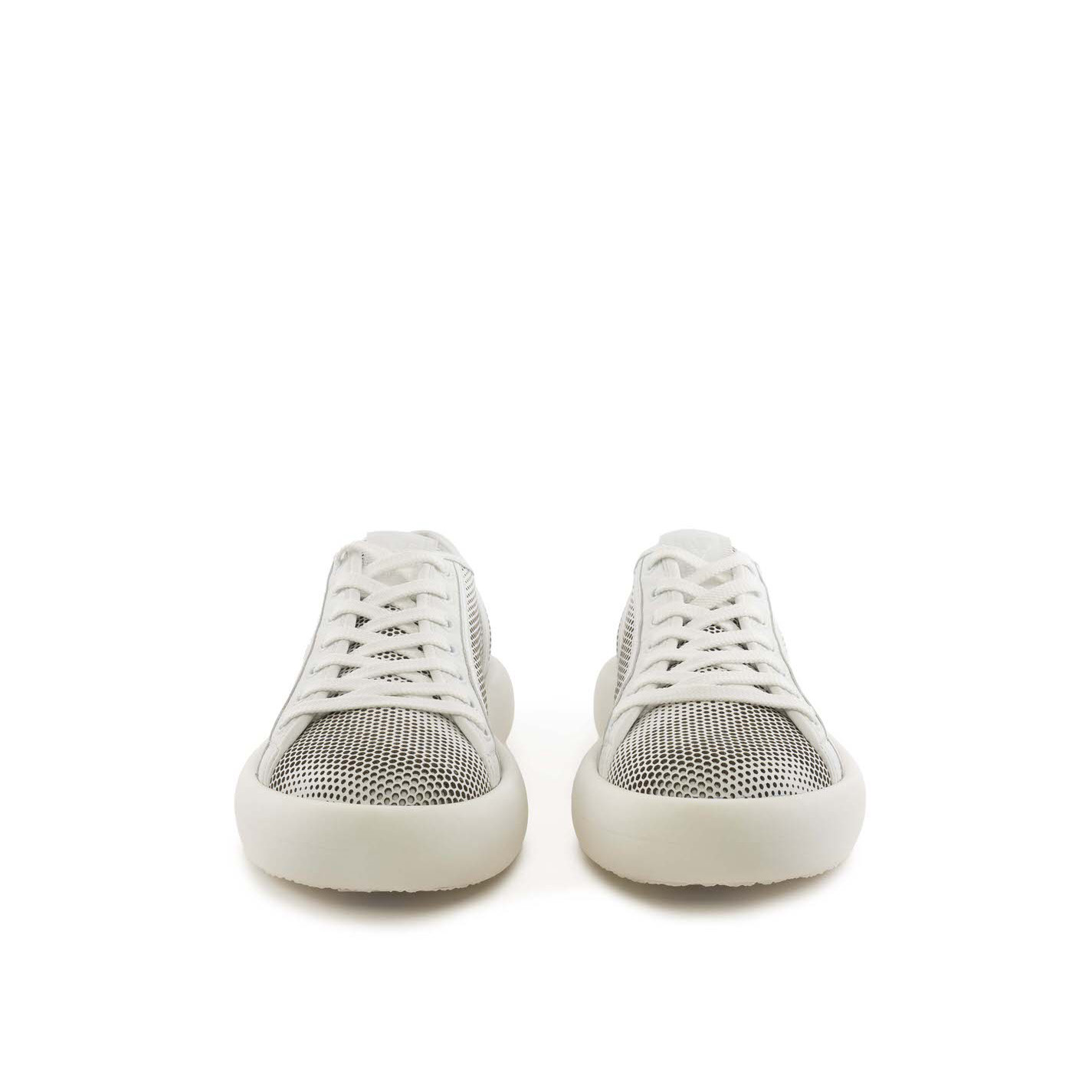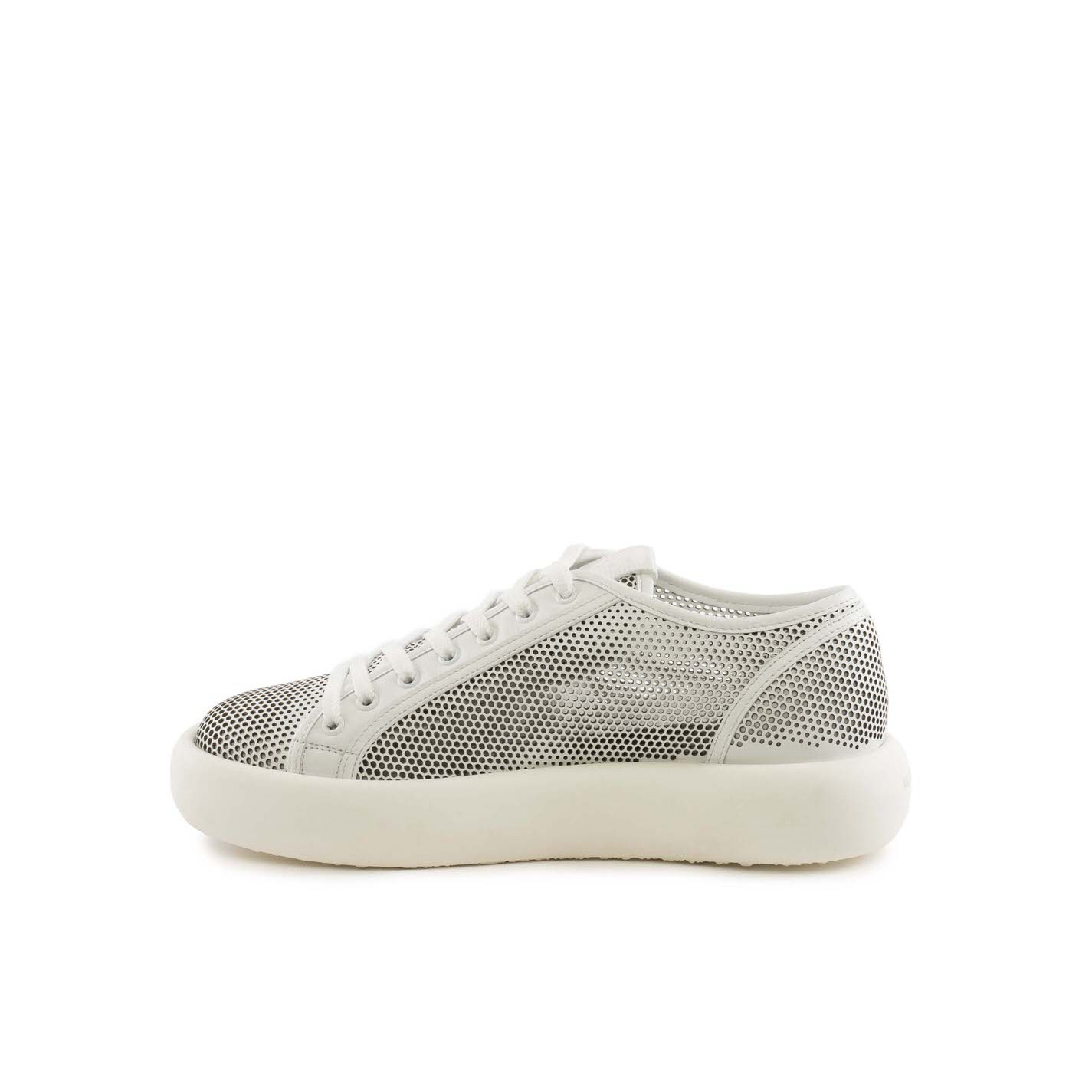 Men's Donut white lace-ups with optical-effect hexagonal perforations, and tone-on-tone leather edging, grosgrain, lacing and eyelets. Light, curved rubber sole and leather-covered insole. Made in Italy.