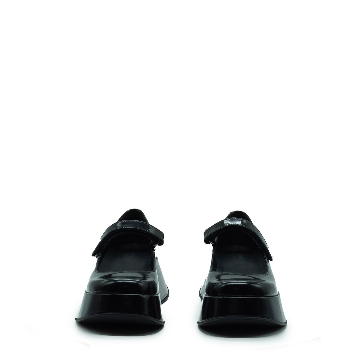 Mini Yoko black brushed calfskin Mary Jane shoes, with adjustable hook-and-loop strap. This model is fitted with a rubber sole with non-slip texture, and a soft footbed. Made in Italy.