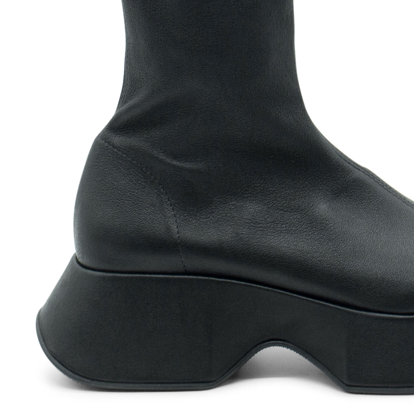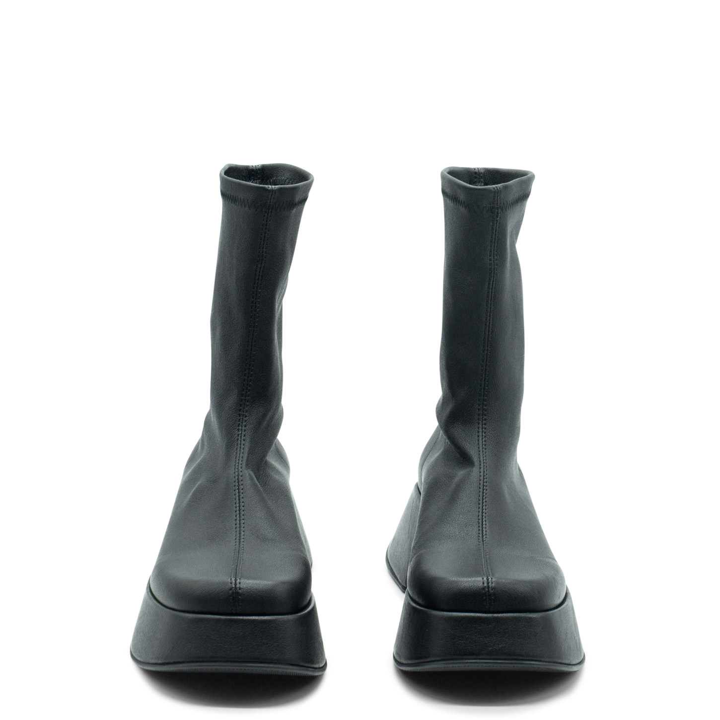 Mini Yoko black soft stretch Nappa leather half boots, sleek and tight-fitting. This model is fitted with a rubber sole with non-slip texture, and a soft footbed. Made in Italy.