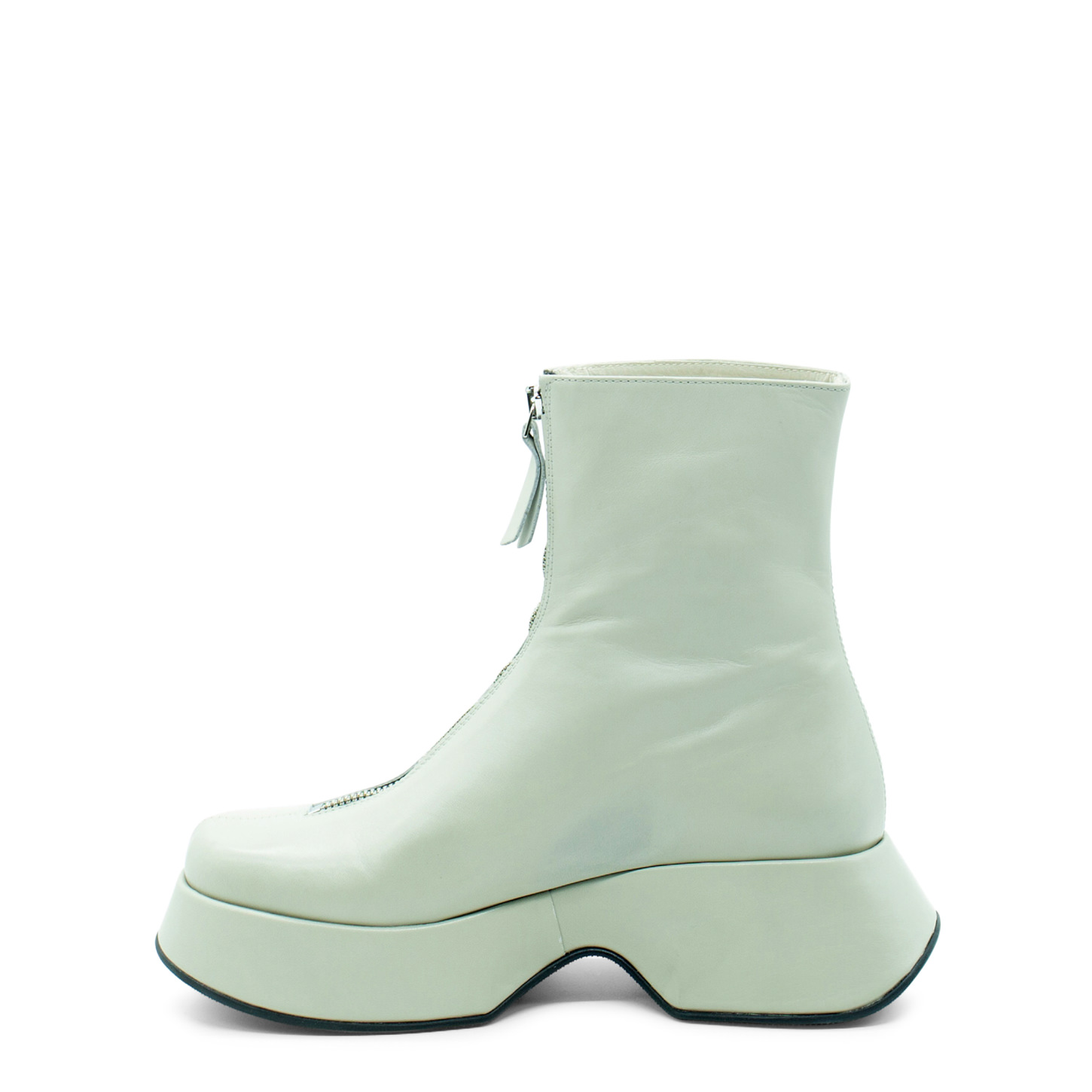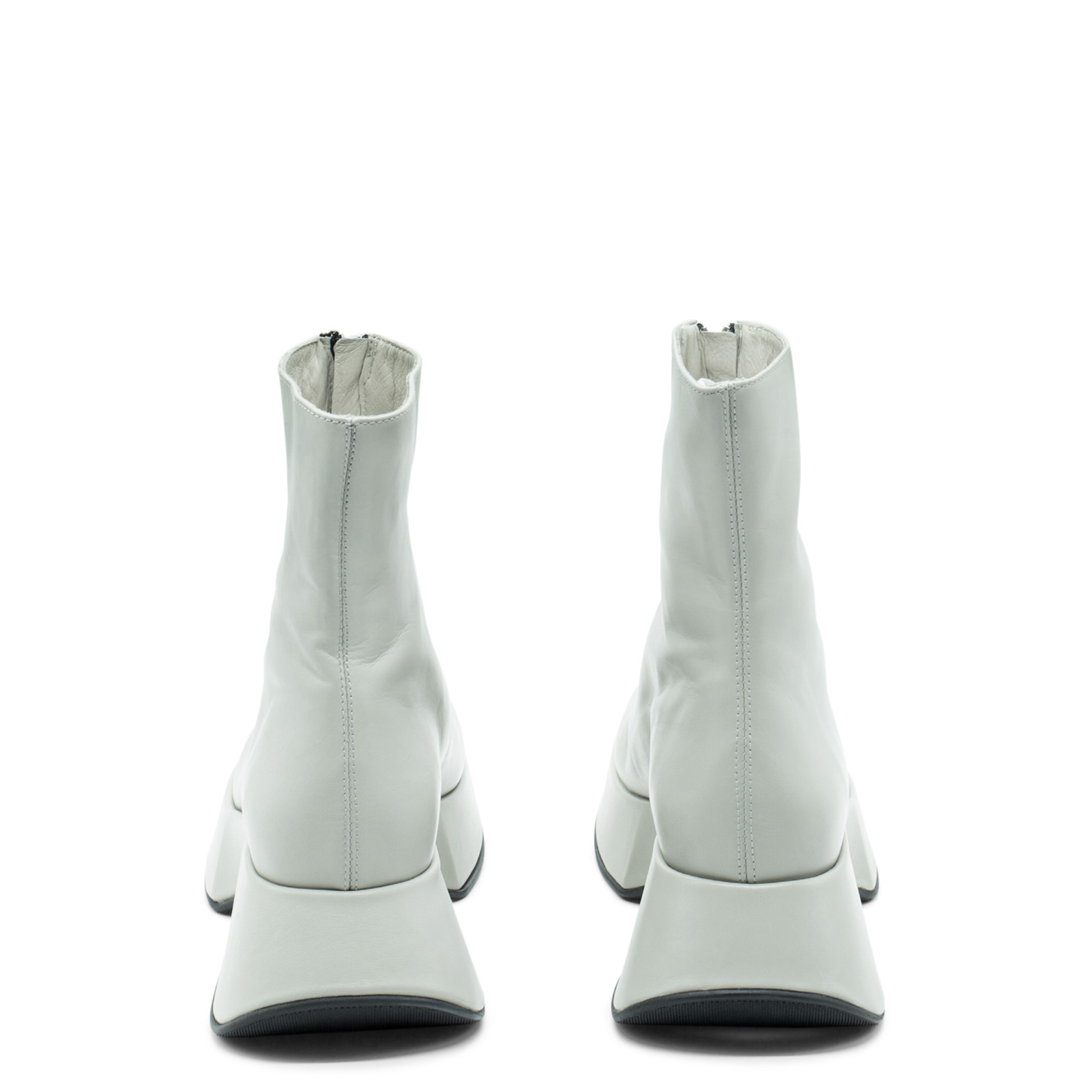 Mini Yoko bone half boots, featuring a sleek design, crafted from smooth calfskin, with front metal zip. This model is fitted with a rubber sole with non-slip texture, and a soft footbed. Made in Italy.