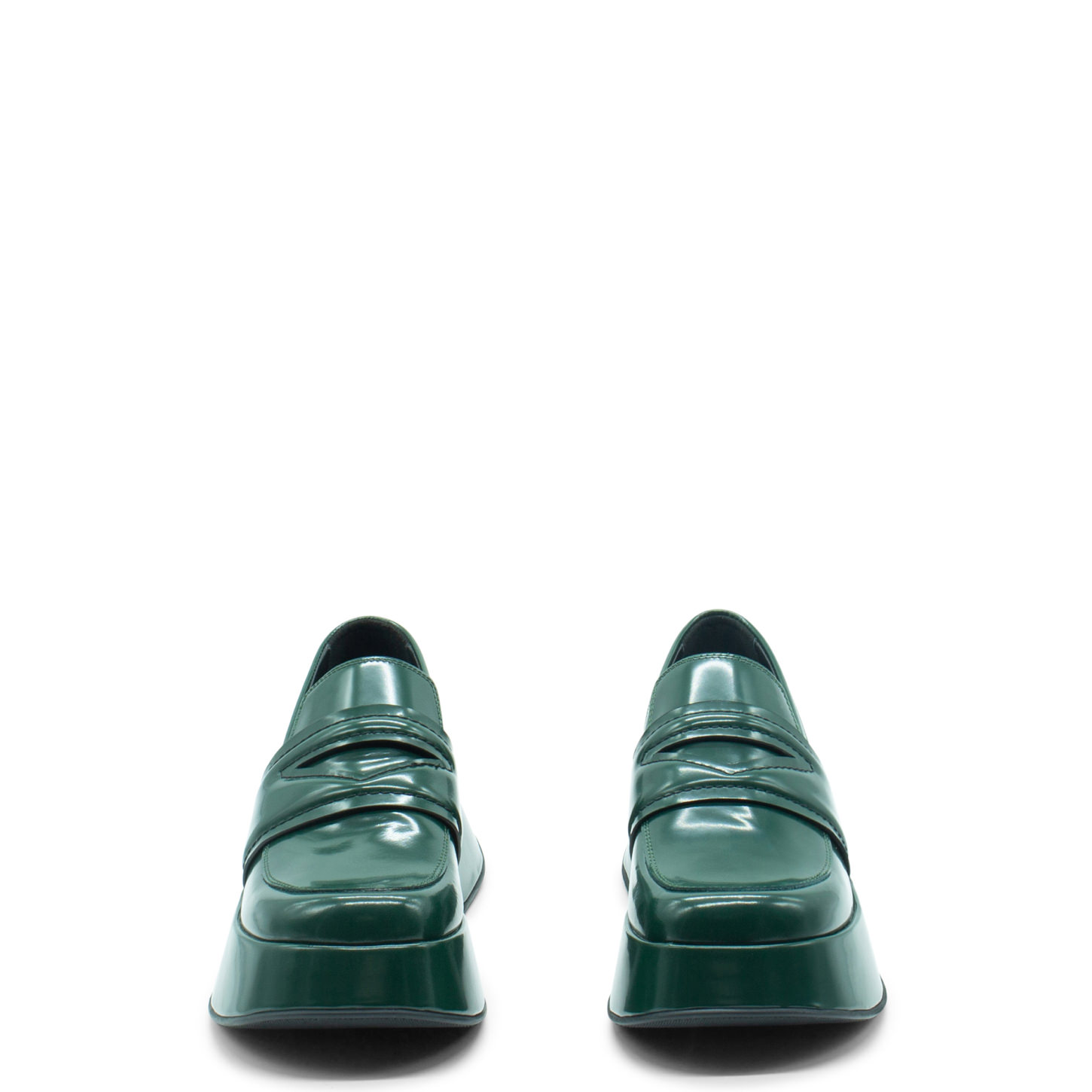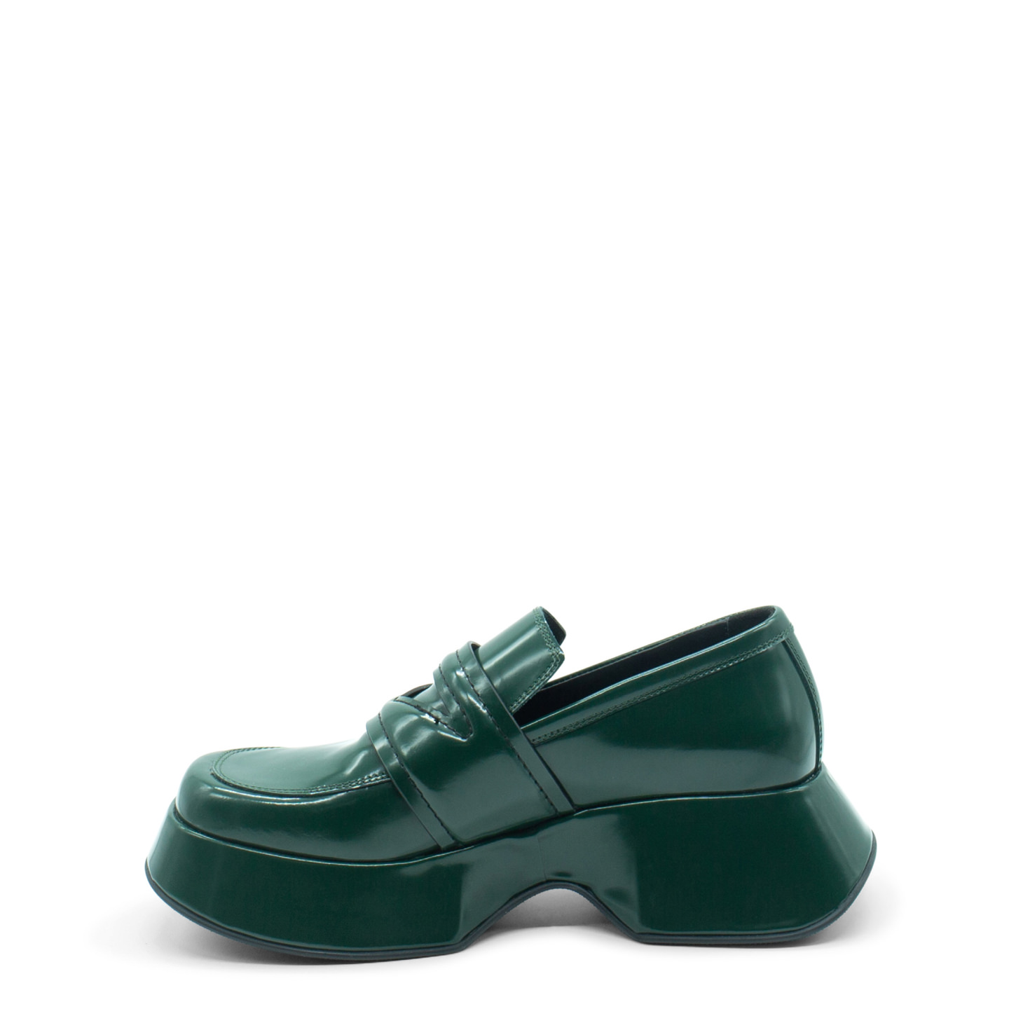 Mini Yoko dark green brushed calfskin loafers, with padded saddle with triangle opening. This model is fitted with a flared platform covered in the upper leather, a comfortable cushion insole, a rubber sole with non-slip texture, and a soft footbed covered in leather. Made in Italy.