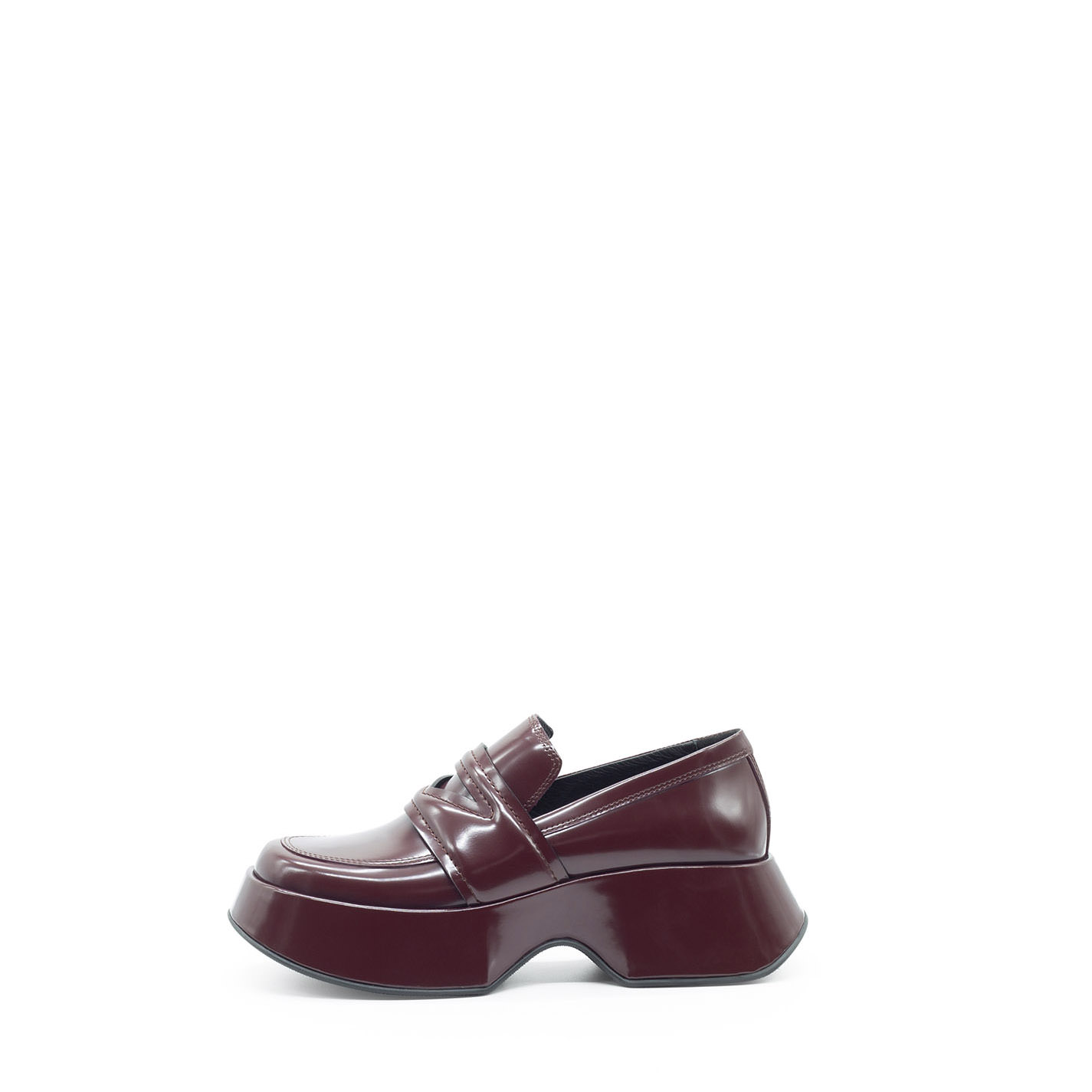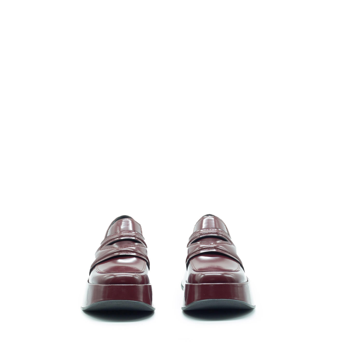 Mini Yoko dark red brushed calfskin loafers, with padded saddle with triangle opening. This model is fitted with a flared platform covered in the upper leather, a comfortable cushion insole, a rubber sole with non-slip texture, and a soft footbed covered in leather. Made in Italy.