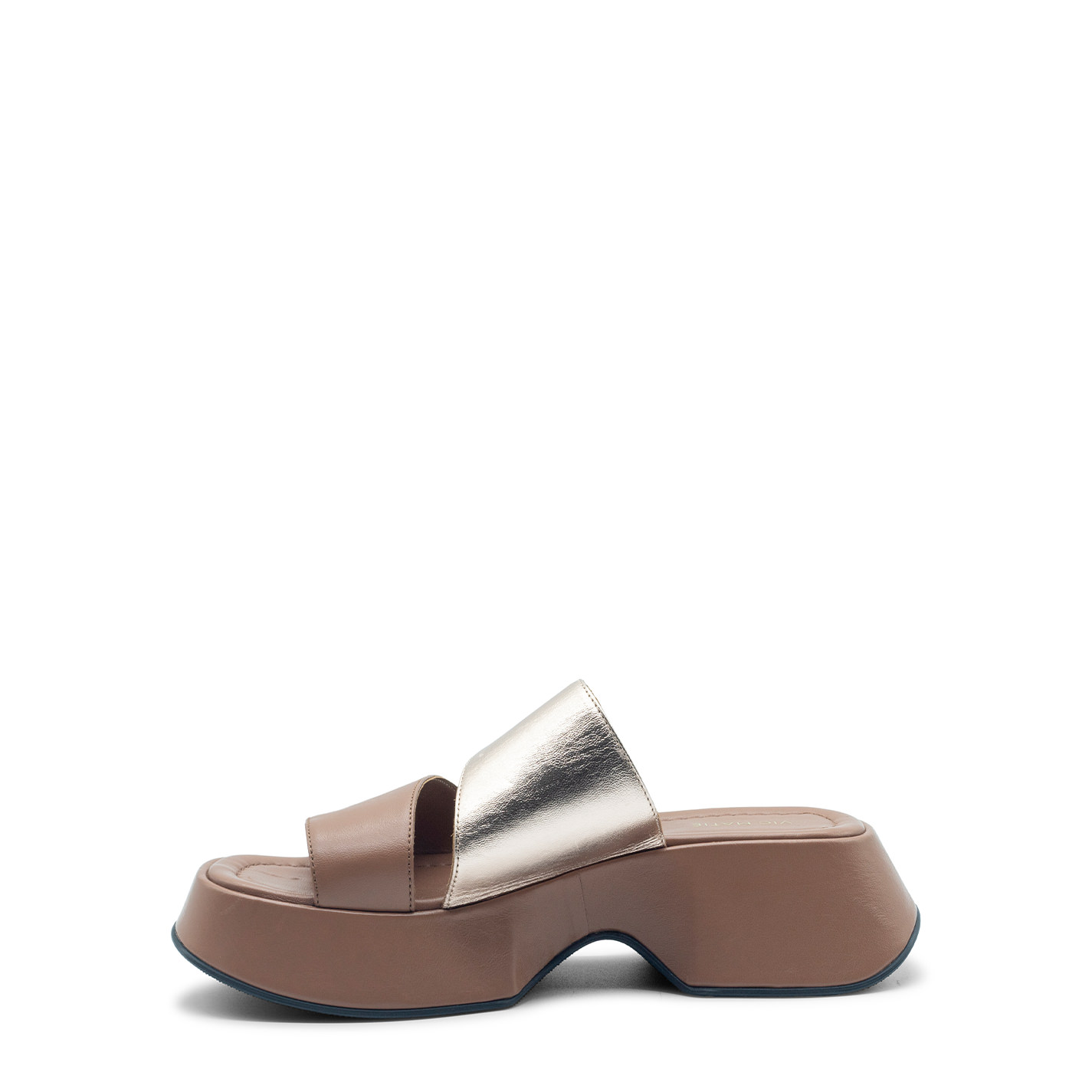 Mini Yoko sandal leather / rose gold bands, made of two-tone nappa. Flared platform covered with the same leather as the upper. Padded and comfortable insole. Rubber sole with non-slip texture. Made in Italy.