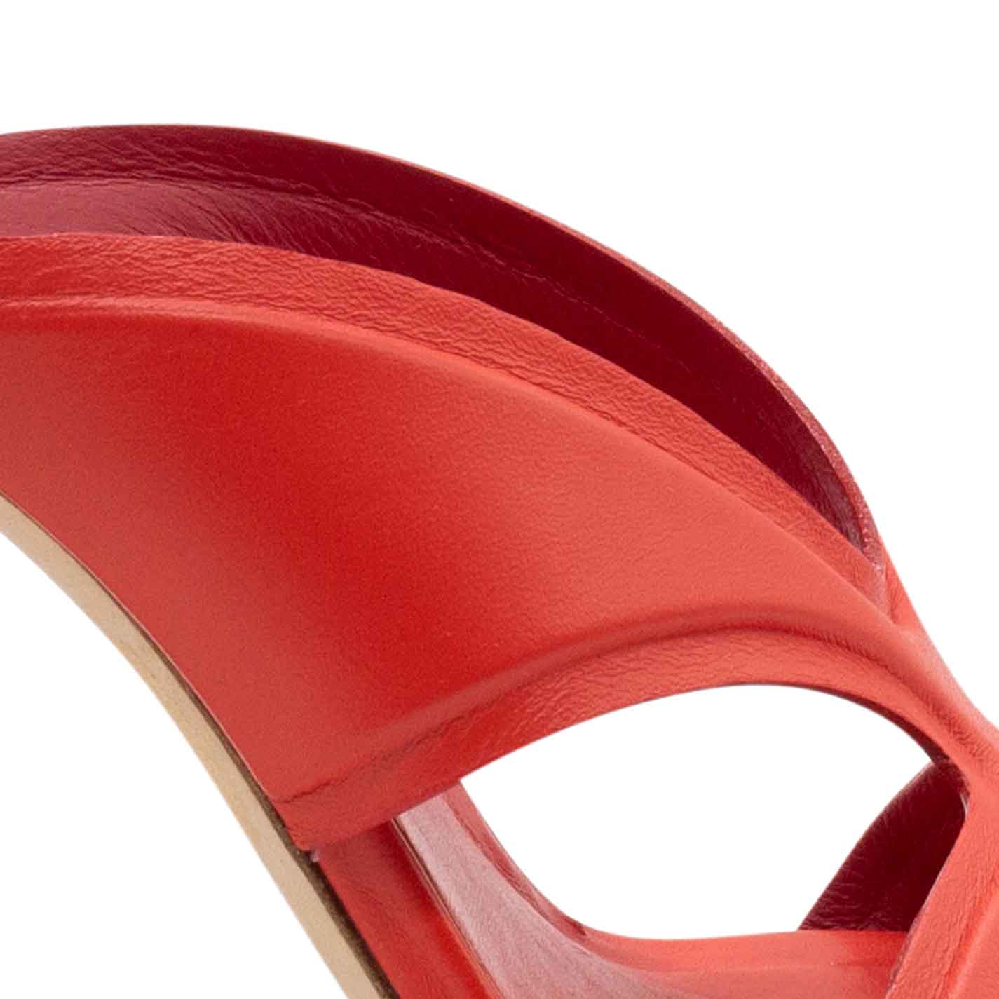Monogram slip-ons in soft coral nappa with raised texture and side openings. Leather sole, openwork-adorned heel, polygon-shaped toe and lightweight padding for greater comfort. Matching lacquer finish on the heel. Made in Italy.