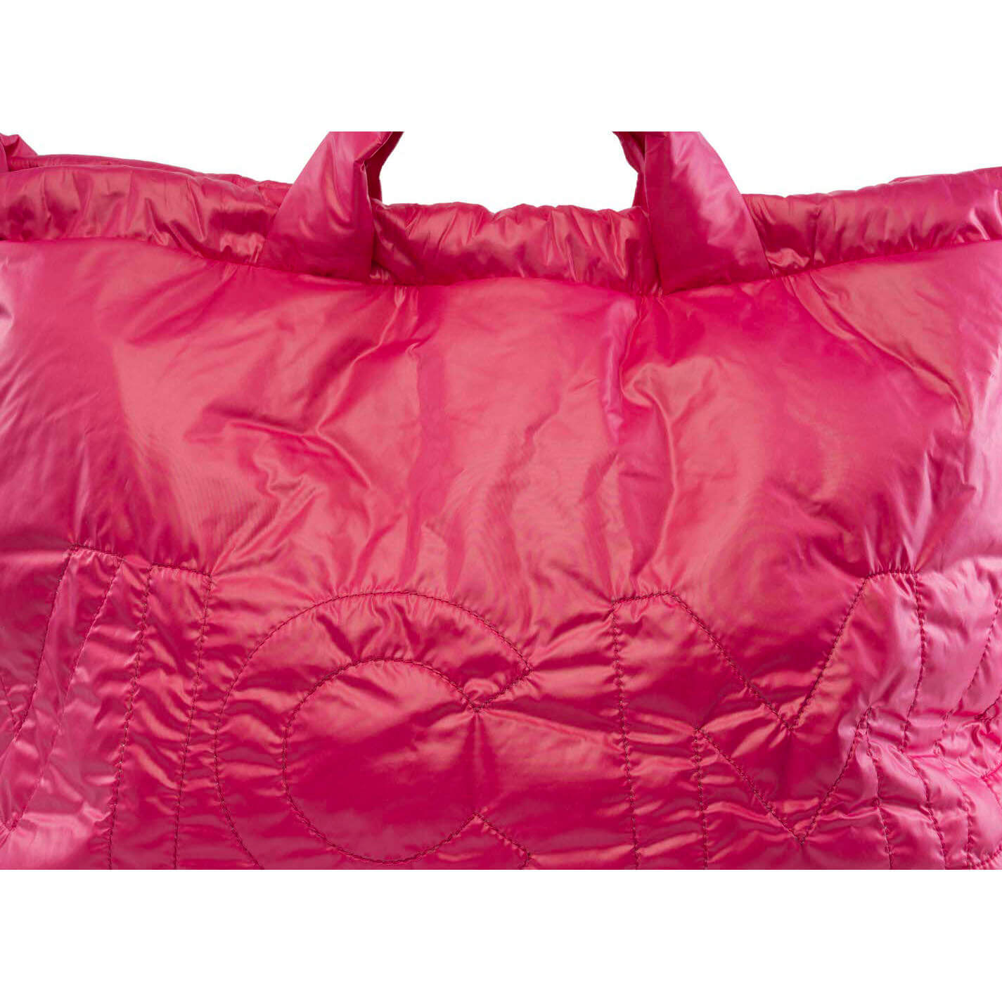Branded fuchsia nylon bag/backpack with tone-on-tone Vic Matié embroidery. Can be worn as a backpack thanks to the shoulder straps, and can be folded away into the useful travel pouch inside.