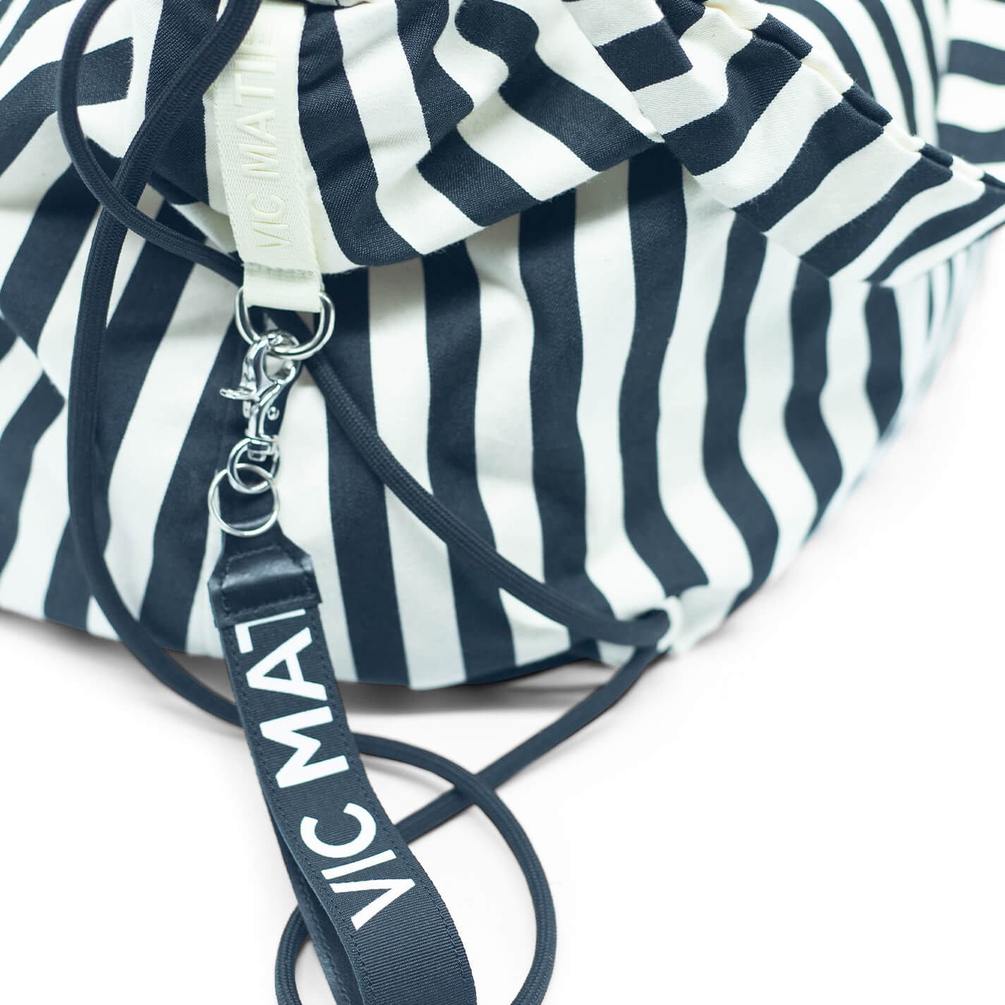 Cream/black marine backpack bagentirely made of logoed cotton fabric, with shoulder strap, the snap closure and drawstring cords act as shoulder straps to be able to wear it as a backpack;