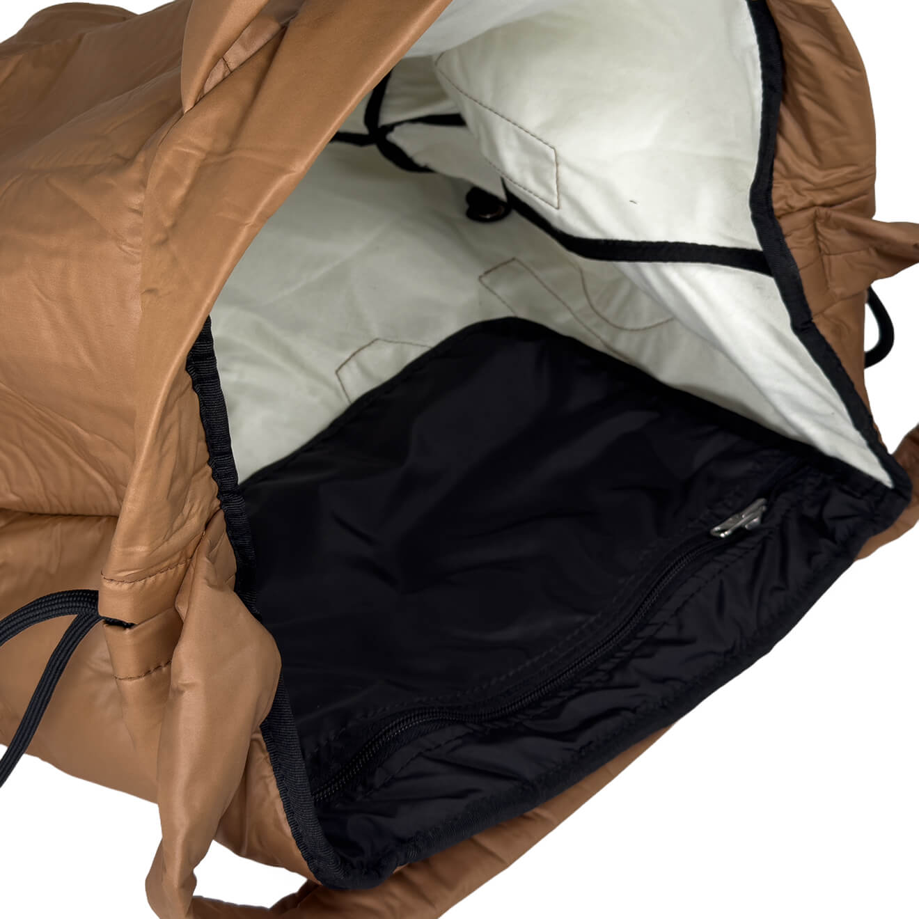 Biscuit logo backpack bag, made from ultra-lightweight and durable nylon, this VIC MATIĒ bag is enhanced by a maxi embroidered detail on the front. The double handles allow it to be carried by hand or on the shoulder, while the cordura straps transform it into a practical backpack. Foldable into the inner pocket, it becomes compact and easy to carry: the ideal accessory for those who are always on the move.