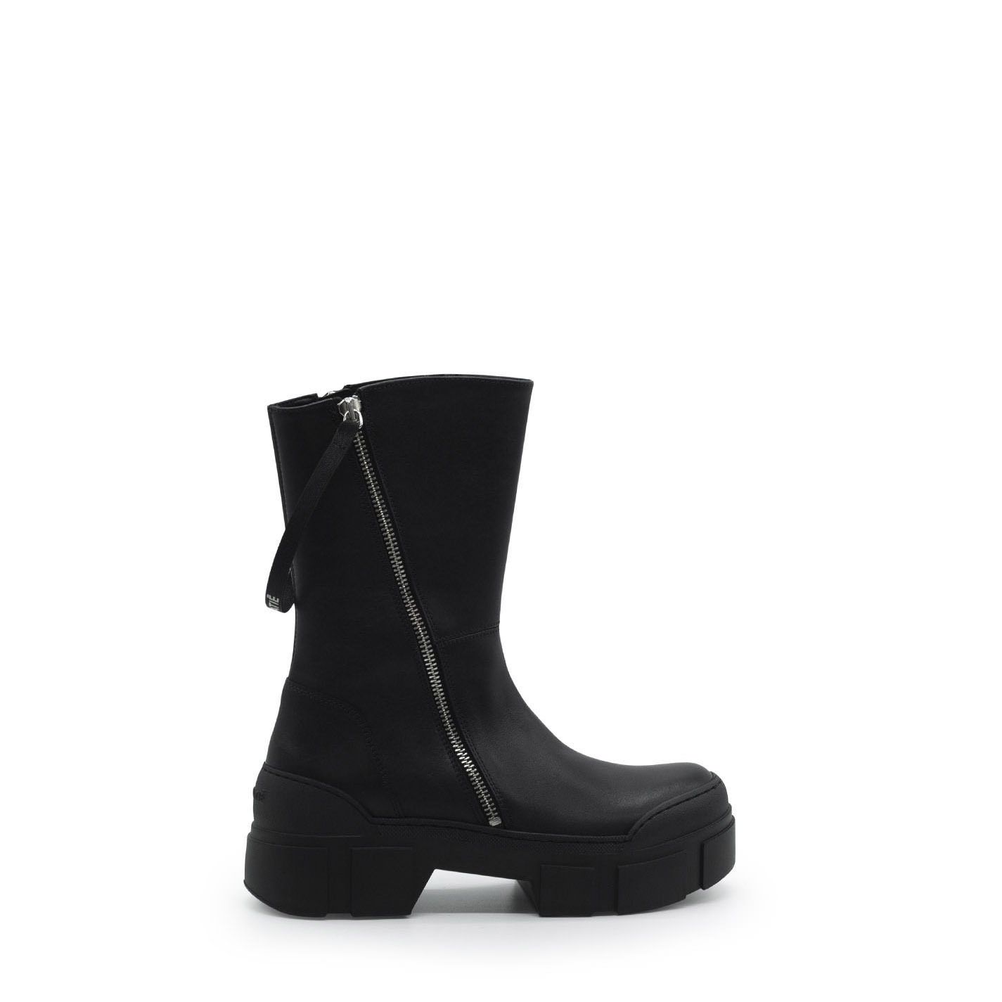 Roccia black soft matt Nappa calfskin low boots, with double metal zip and branded grosgrain puller in-between. This model is fitted with TPU shell sole with raised details and soft TAG footbed covered in calfskin. Made in Italy.