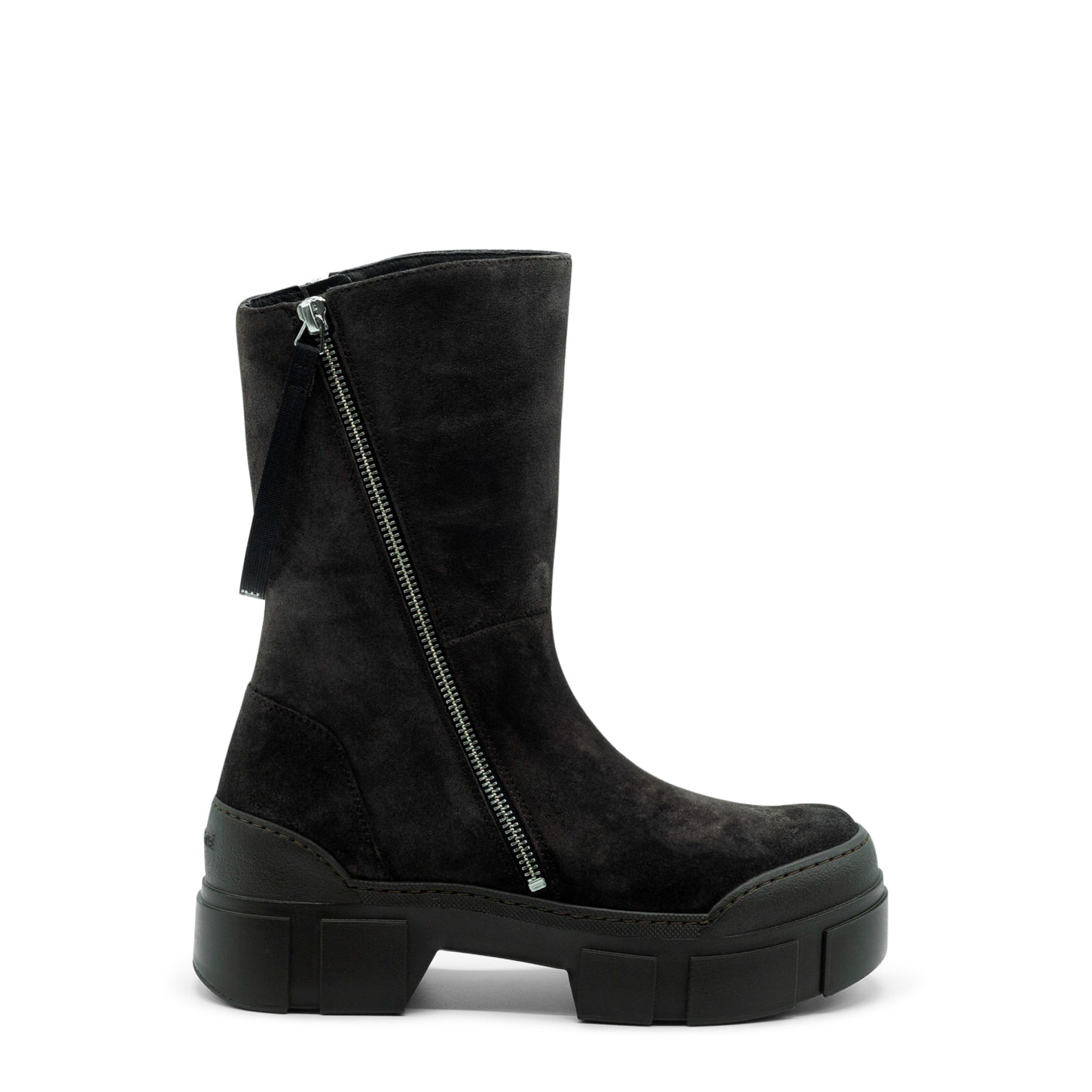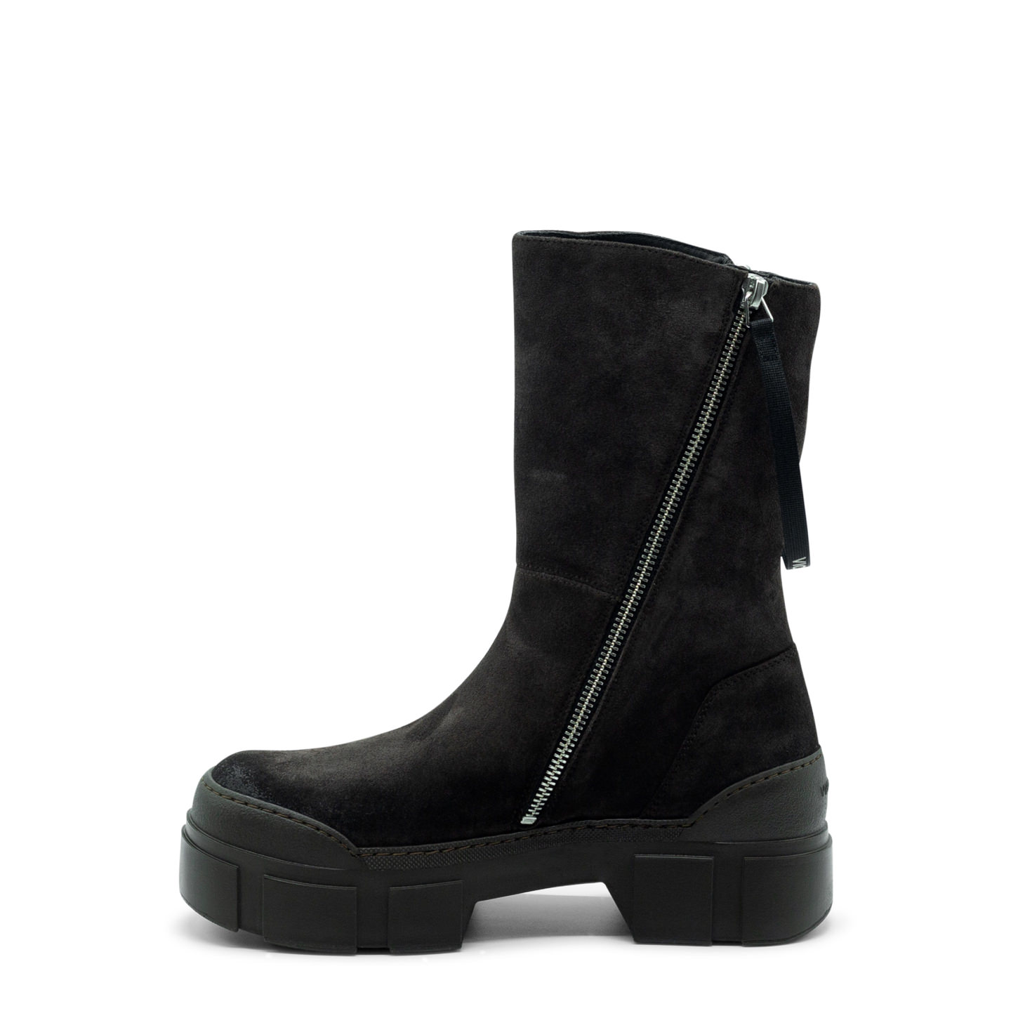 Roccia vintage-effect dark brown split calfskin low boots, with double metal zip and branded grosgrain puller in-between. This model is fitted with TPU shell sole with raised details and soft TAG footbed covered in calfskin. Made in Italy.