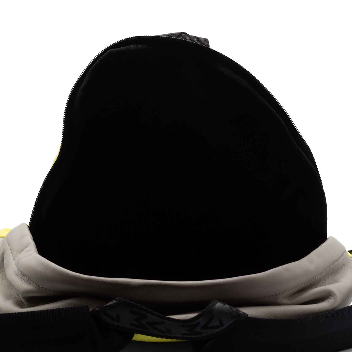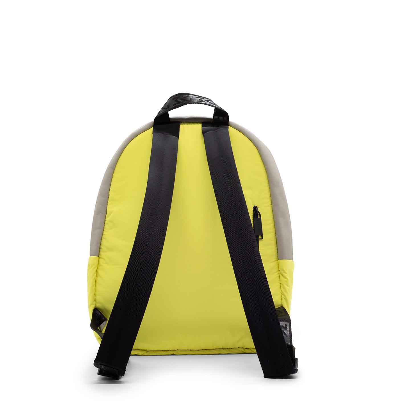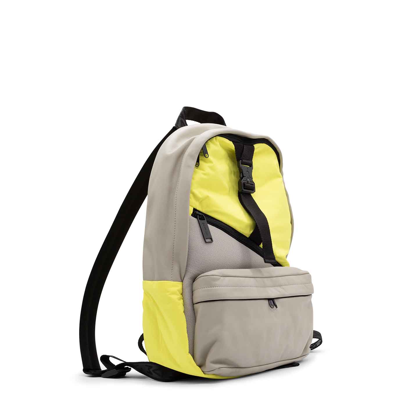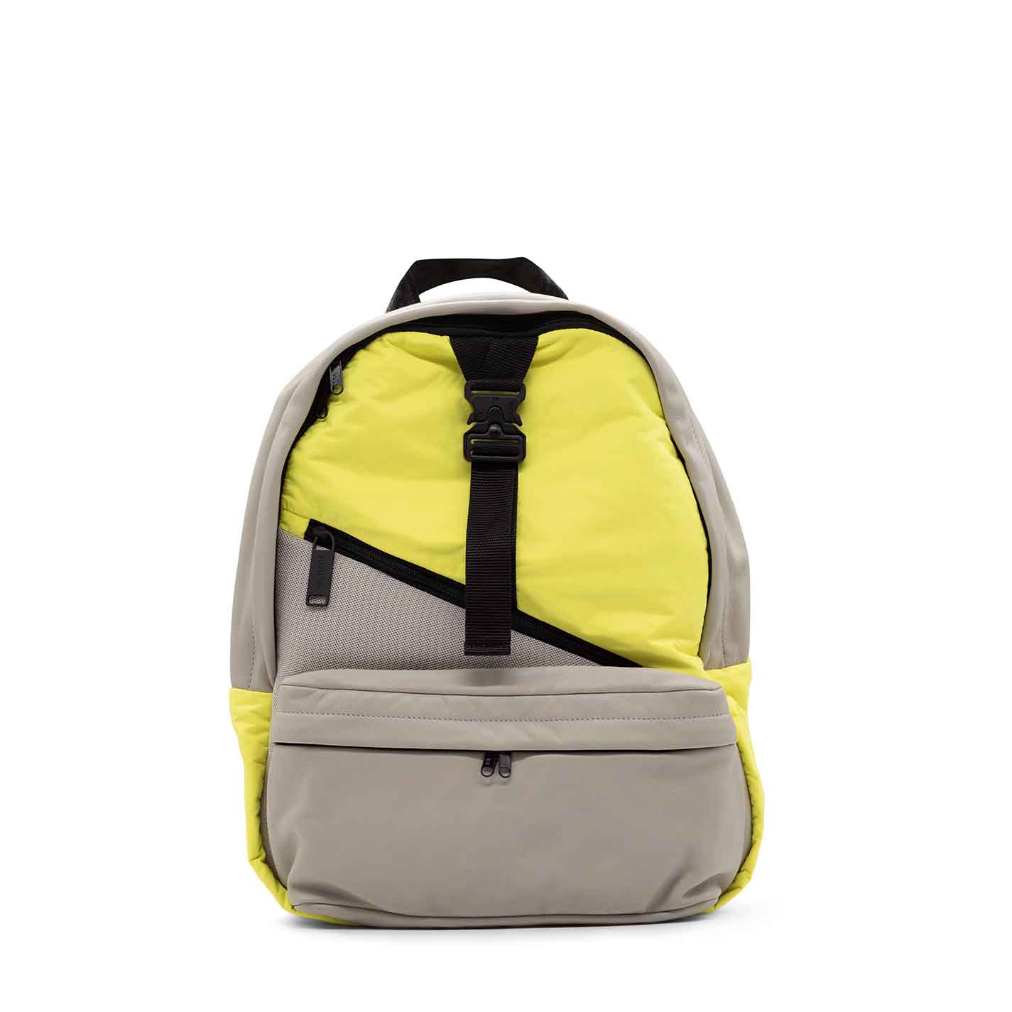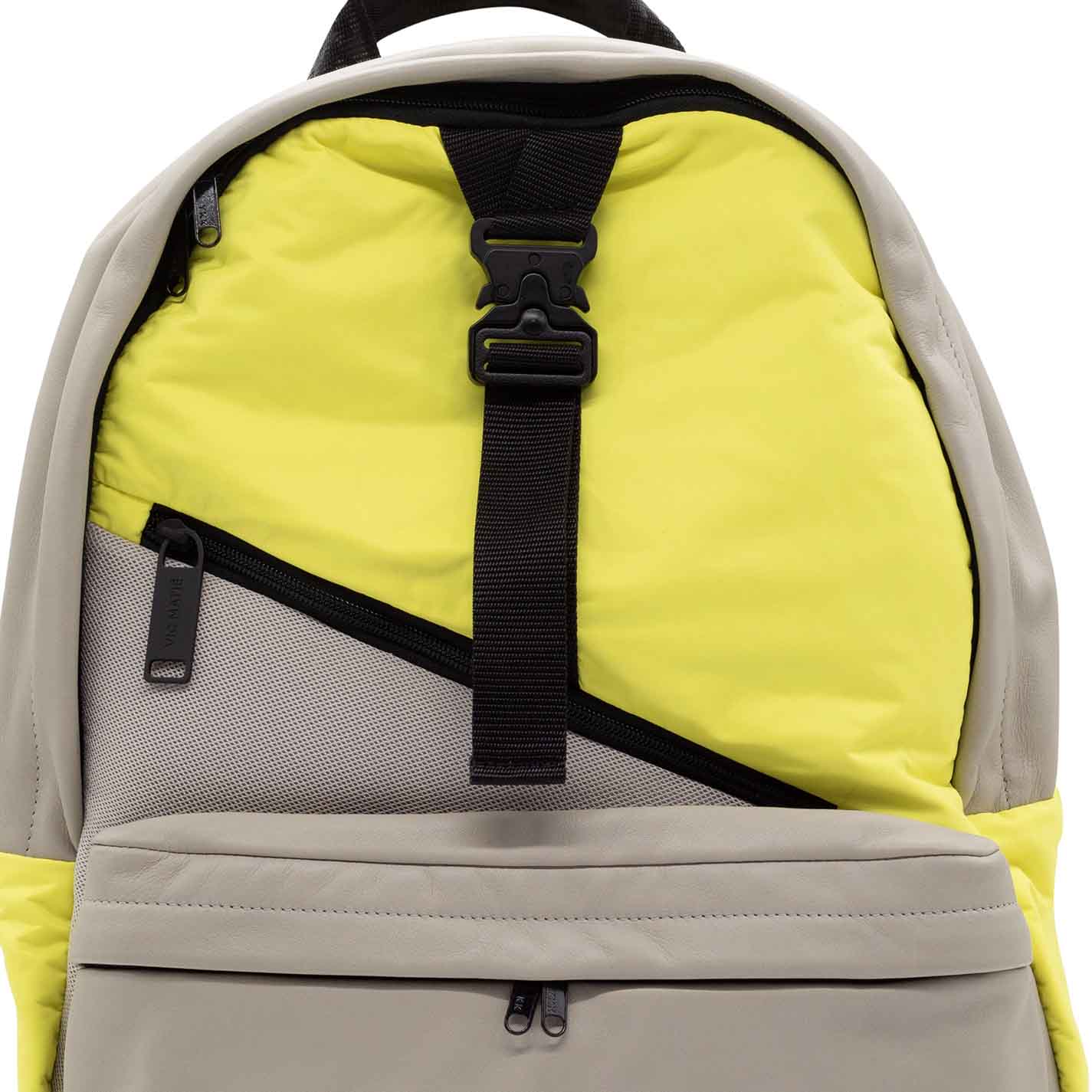 Sand-yellow/yellow backpack in soft nappa calfskin and technical fabric, with front pockets, concealed zip fastenings, clip fastening at the front and cordura shoulder straps.