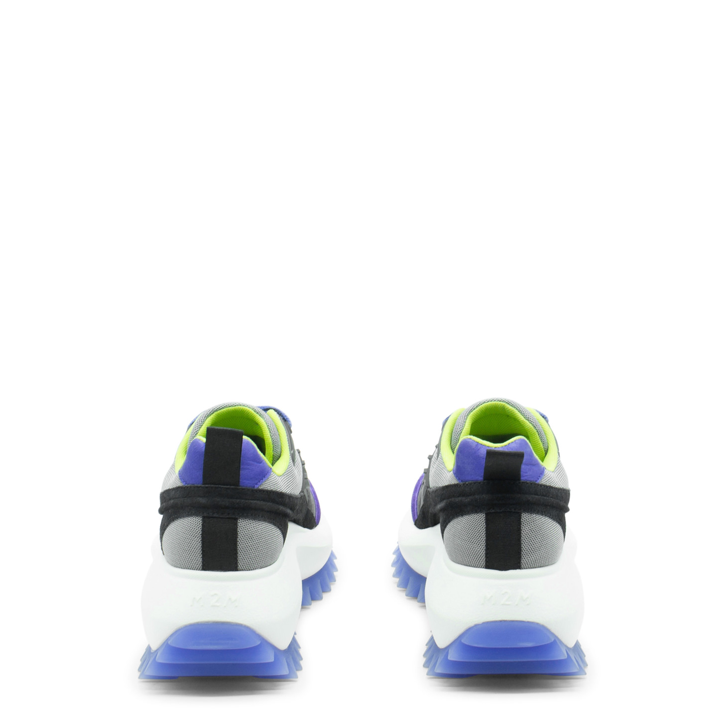 Running black/purple/grey nubuck/leather/mesh and split leather sneakers, featuring rubber accessories, lace loops and raised inserts, also on the upper section. This model is fitted with extra-light XL one-piece rubberised and branded sole, outsole with maxi spikes, and anatomic footbed covered in pure cotton. Made in Italy.