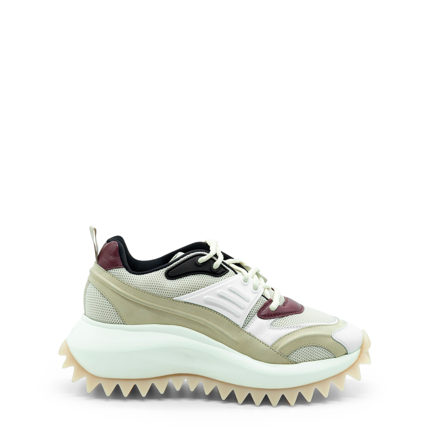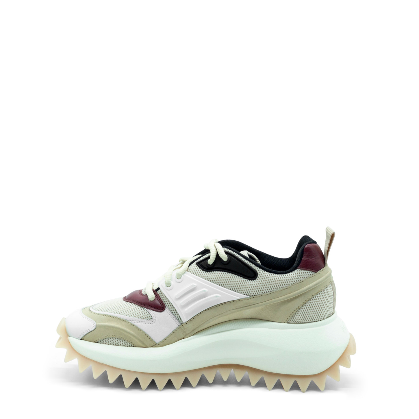 Running bone/white nubuck/leather/mesh and split leather sneakers, featuring rubber accessories, lace loops and raised inserts, also on the upper section. This model is fitted with extra-light XL one-piece rubberised and branded sole, outsole with maxi spikes, and anatomic footbed covered in pure cotton. Made in Italy.